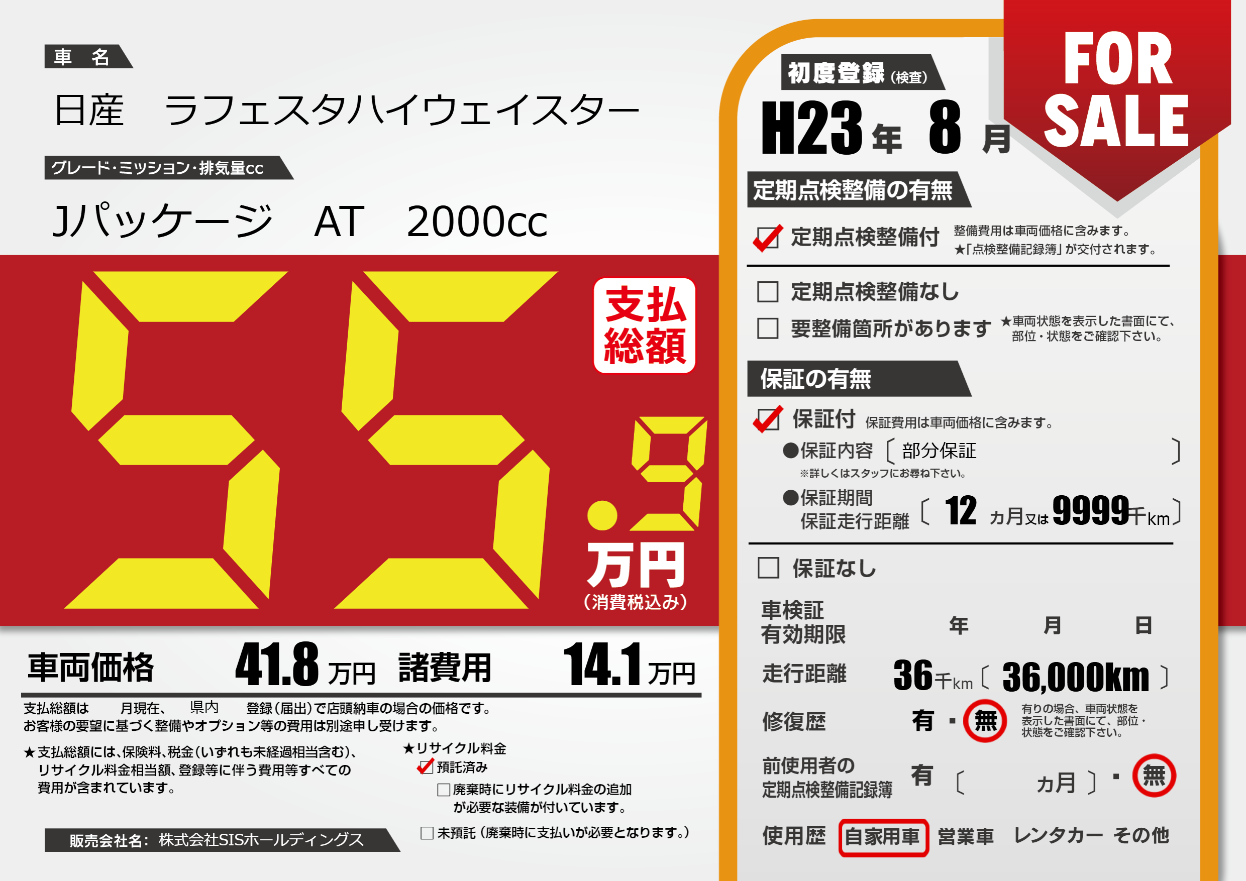 | 初年度登録 | H23年8月 | ||