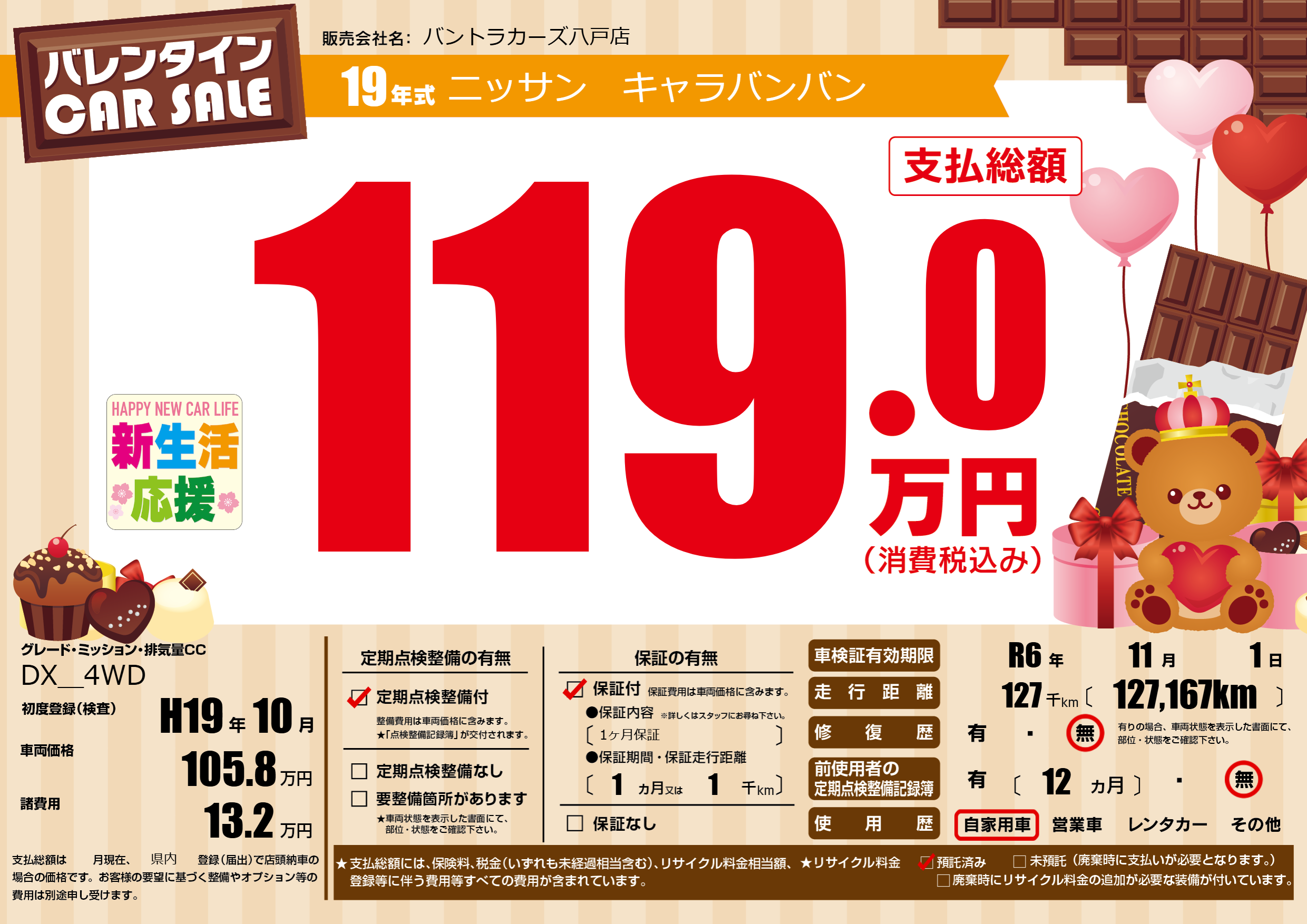 | 走行キロ | 12.7万km | 初年度登録 | H19年10月 |