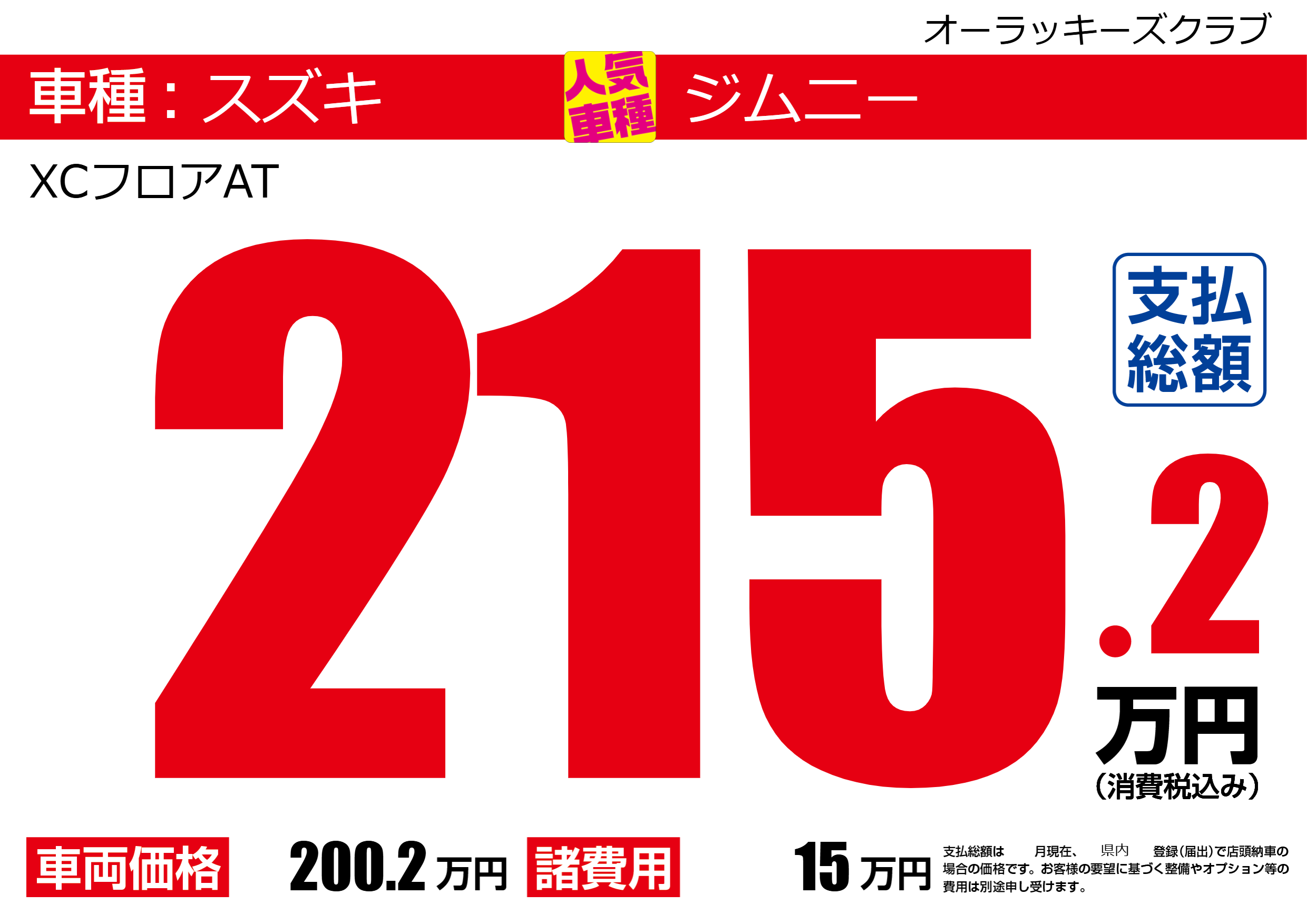 | 車名 | スズキ ジムニー | グレード ミッション 排気量 |