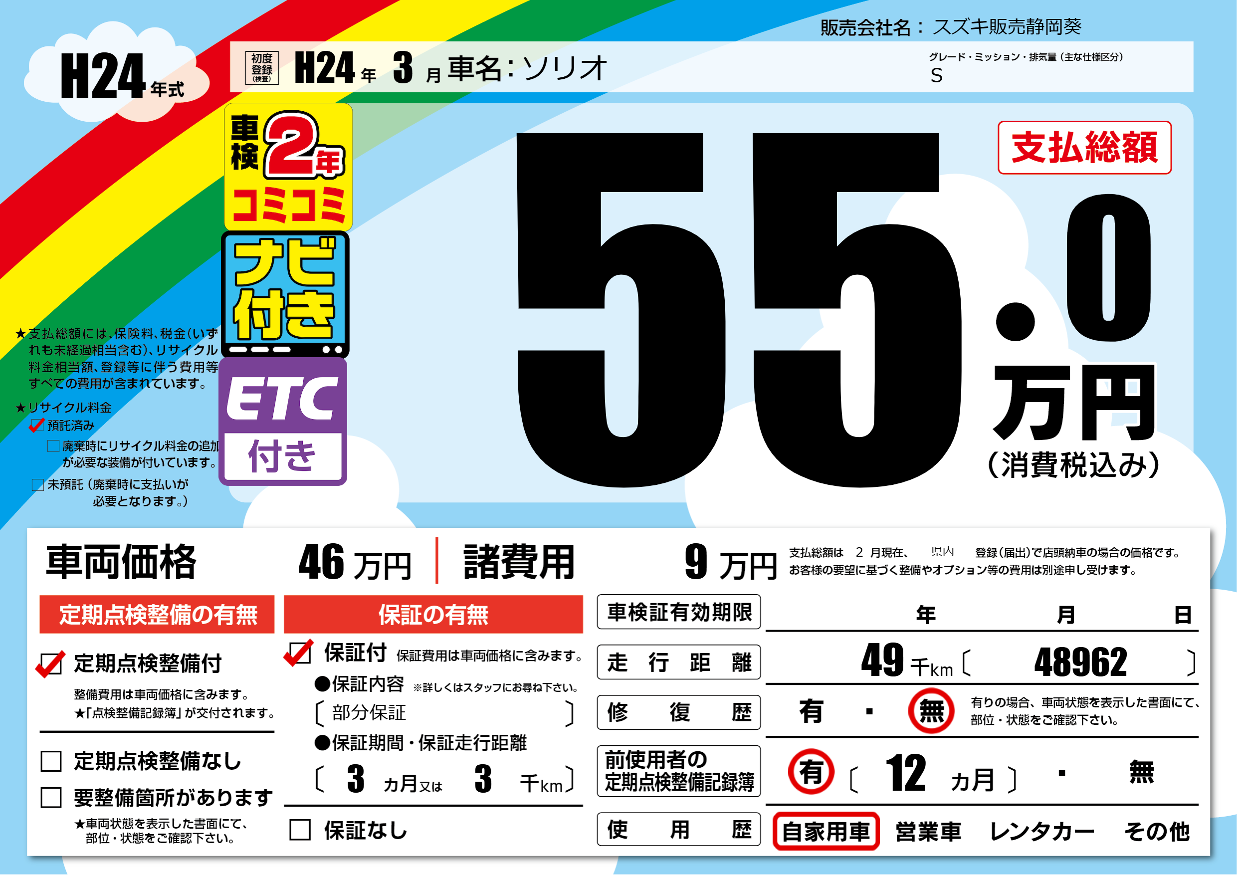 | 走行キロ | 4.9万km | 初年度登録 | H24年3月 |