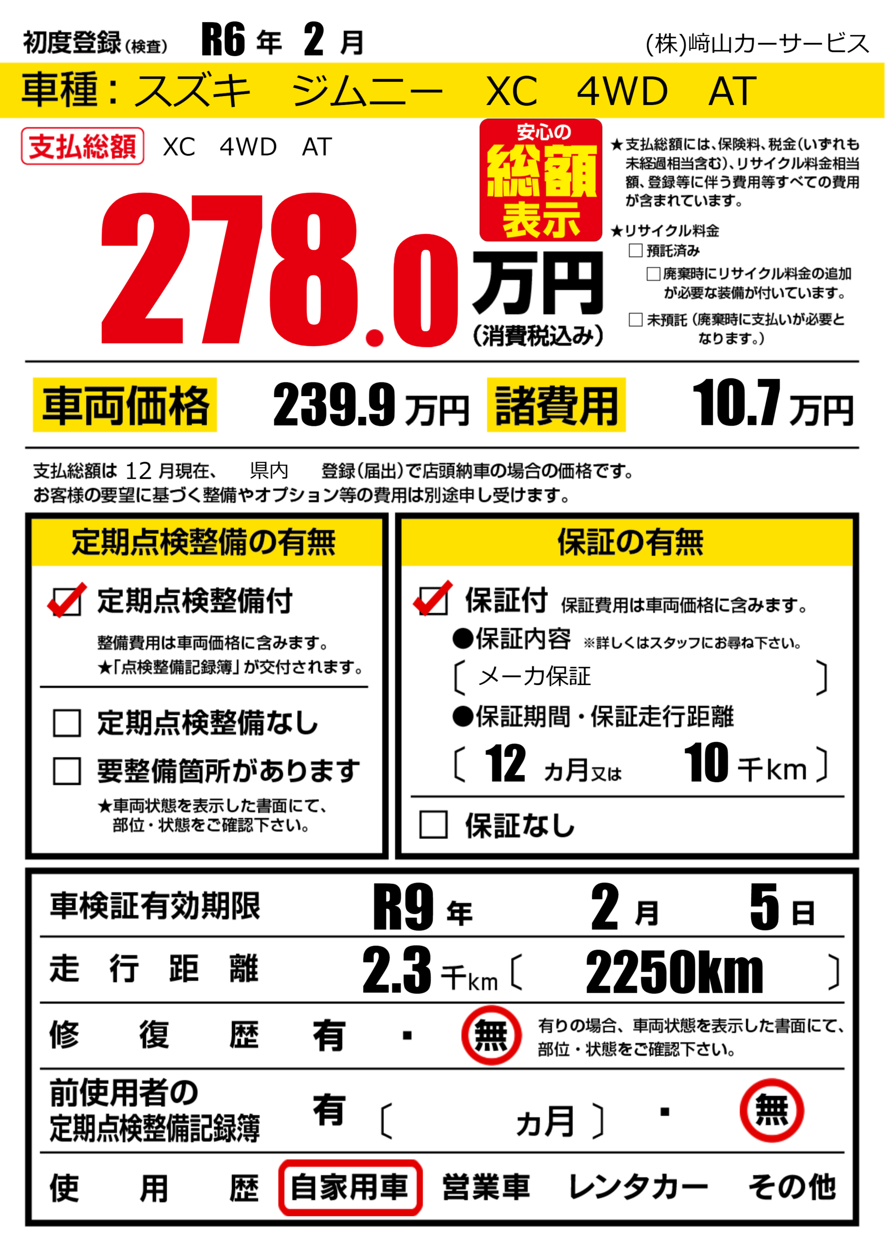 | 車検制限 | R9年 2月 5日 | ||
