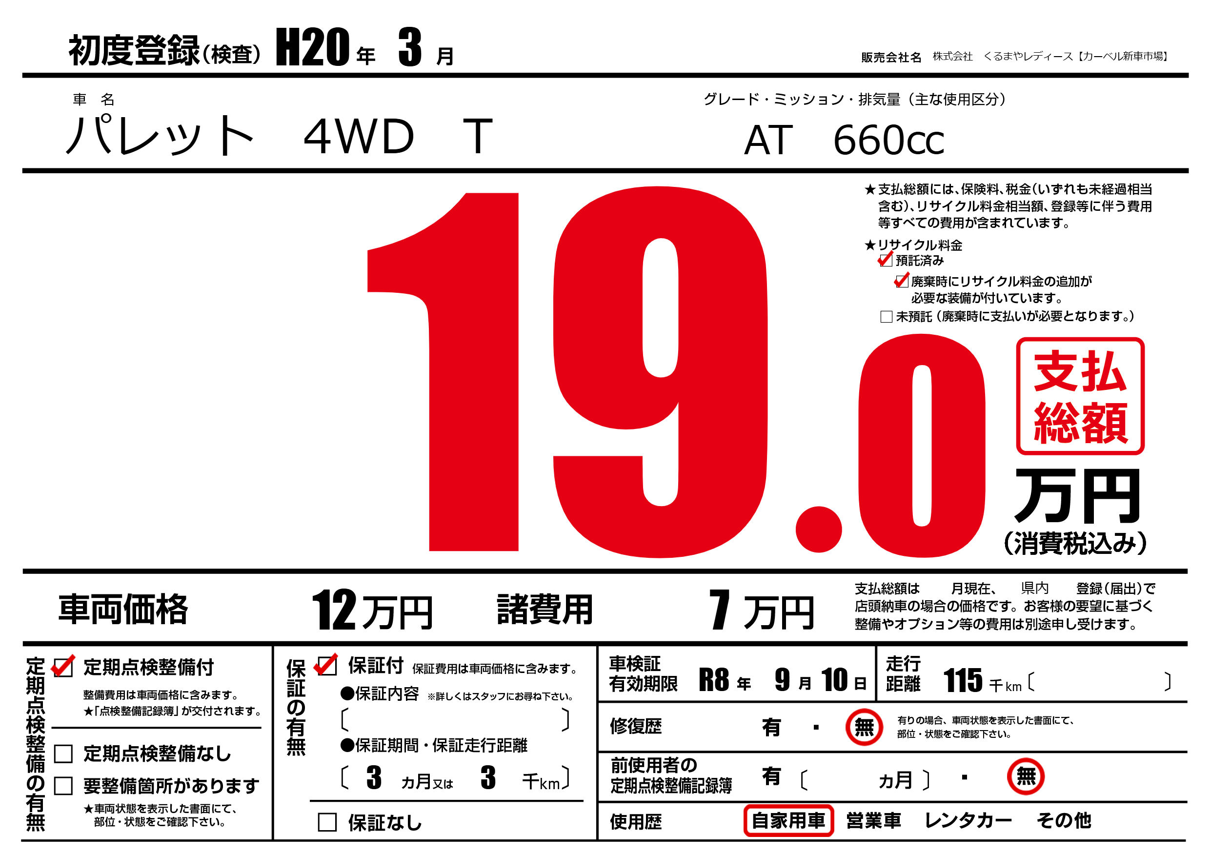 | 定期点検整備 | 定期点検整備あり | ||