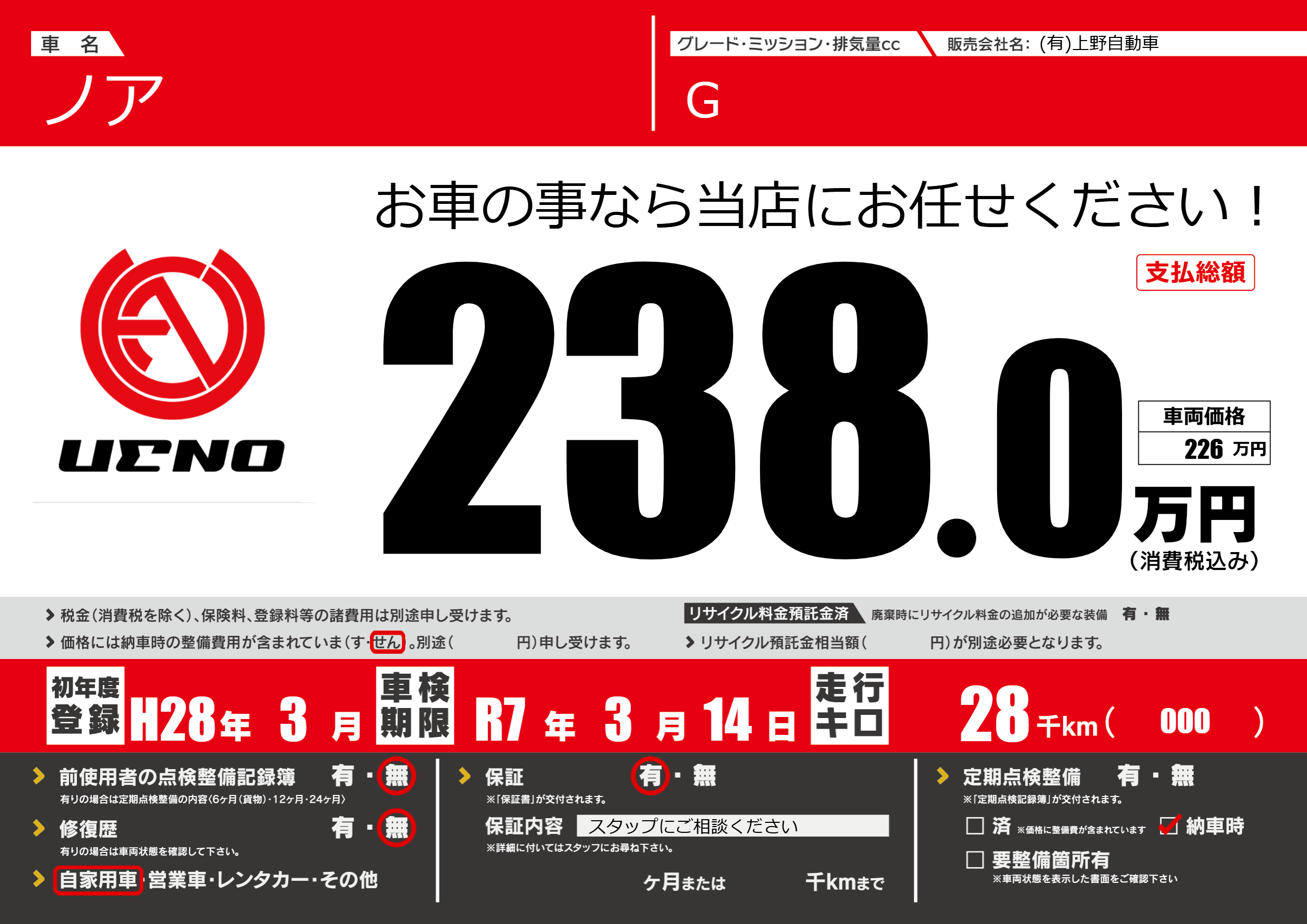 | 走行キロ | 2.8万km | 初年度登録 | H28年3月 |