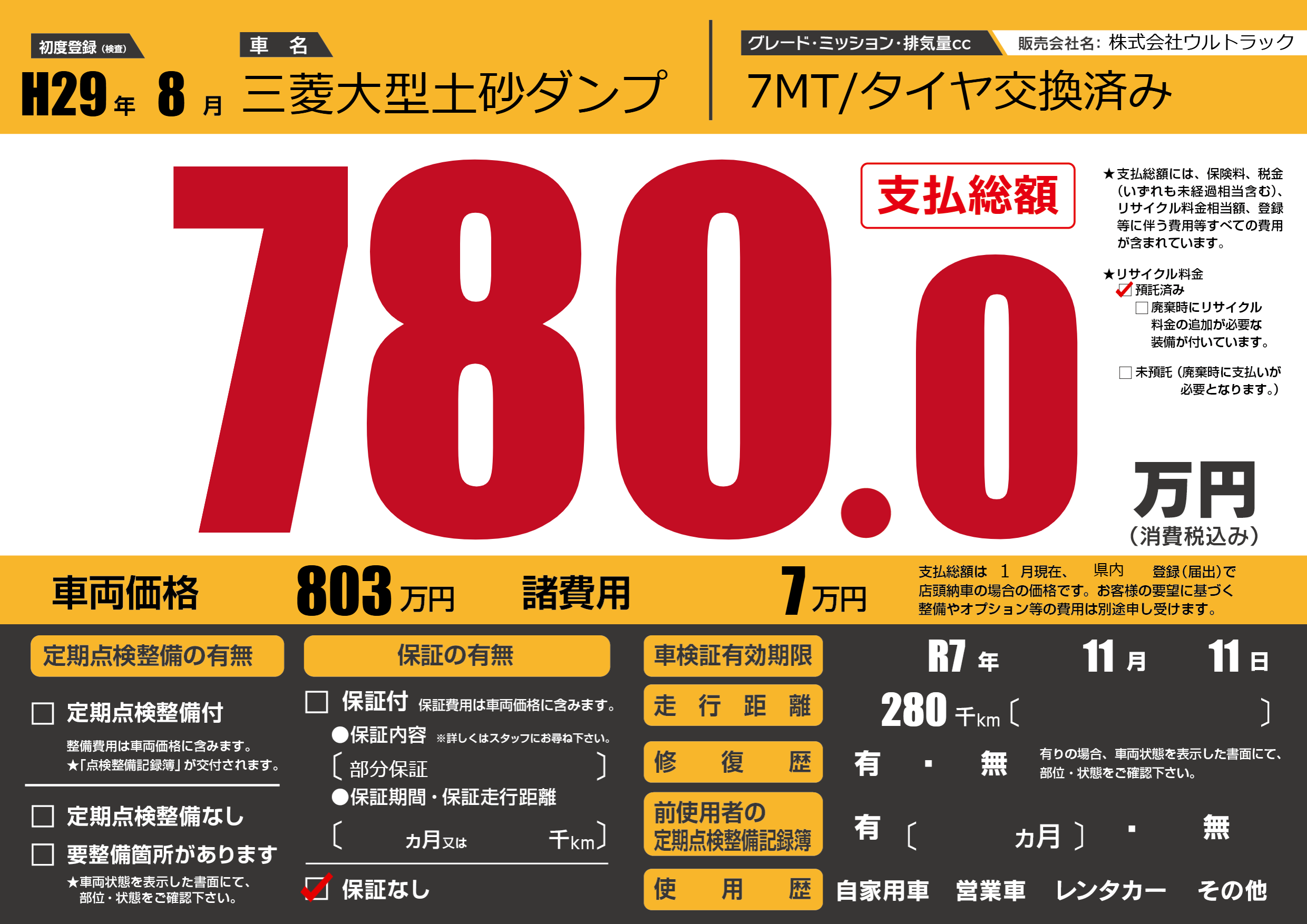 なし | 車検制限 | R7年11月11月 |