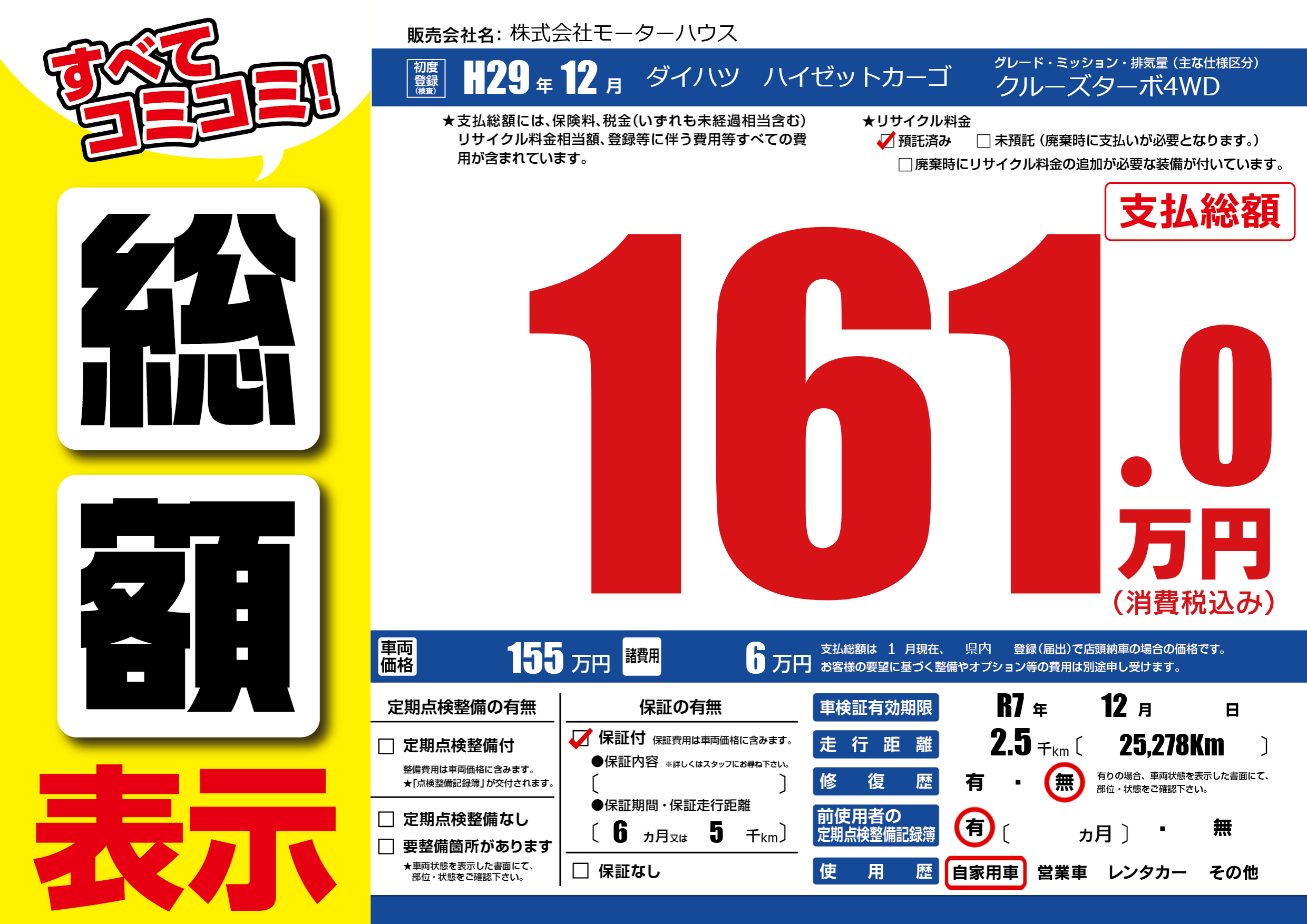 | 車検制限 | R7年 12月 - 日 | ||
