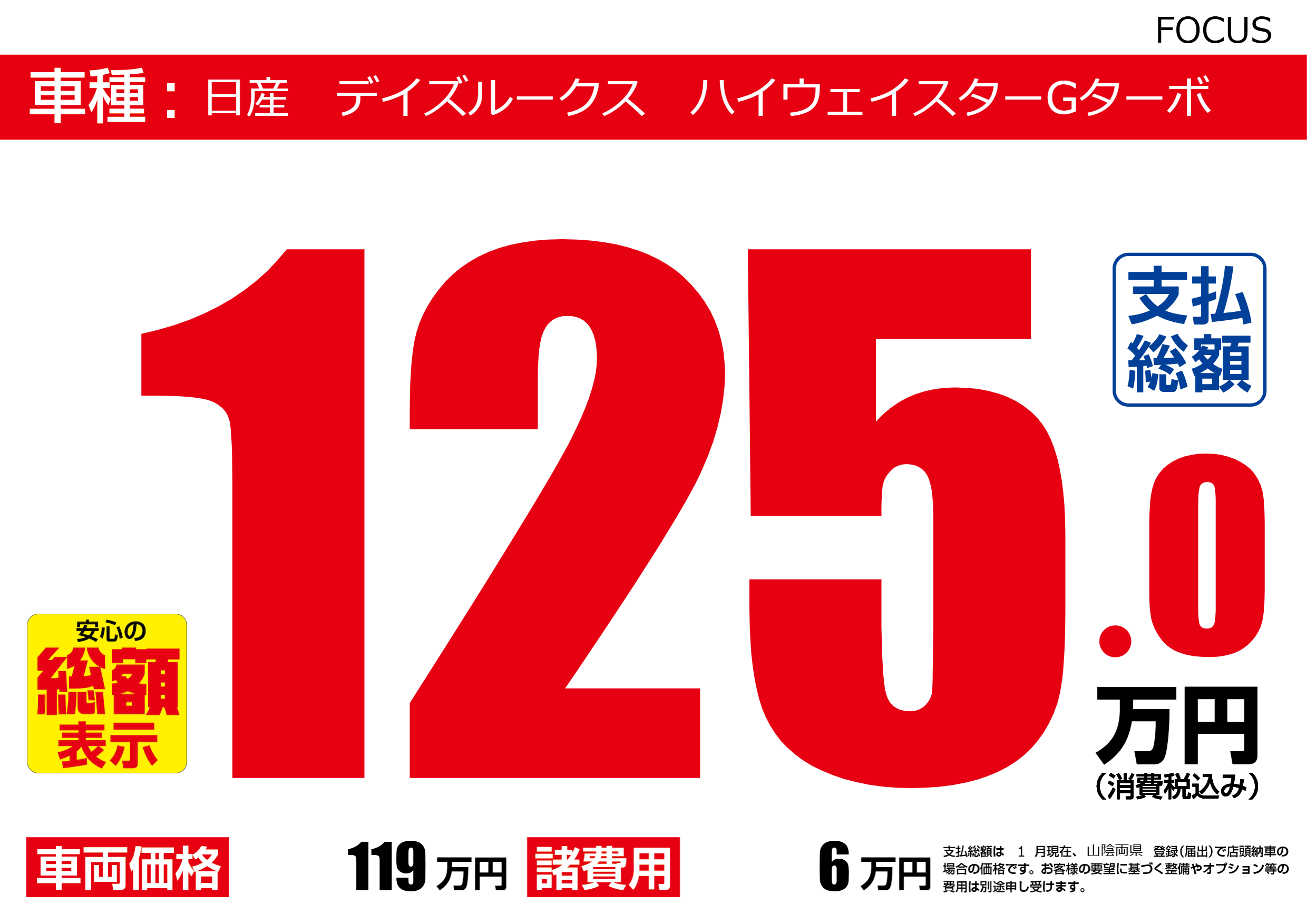 | 車名 | 日産 デイズルークス ハイウェイスターGターボ | グレード ミッション 排気量 |