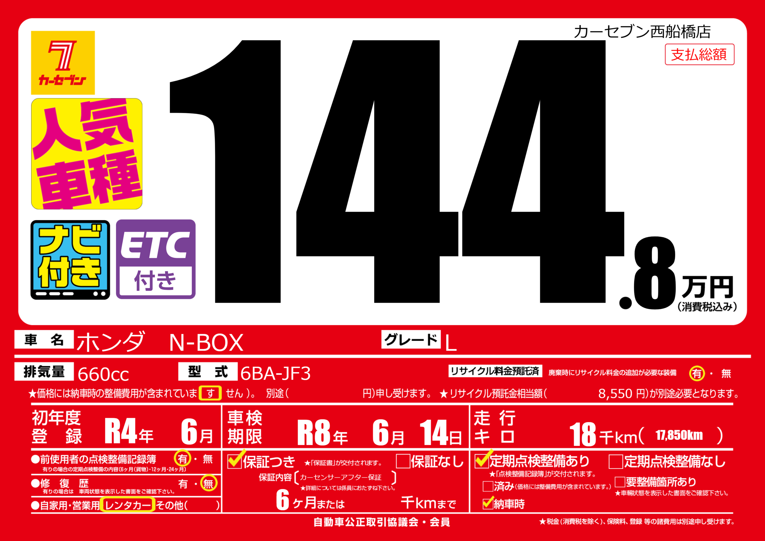 | 走行キロ | 1.8万km | 初年度登録 | R4年6月 |