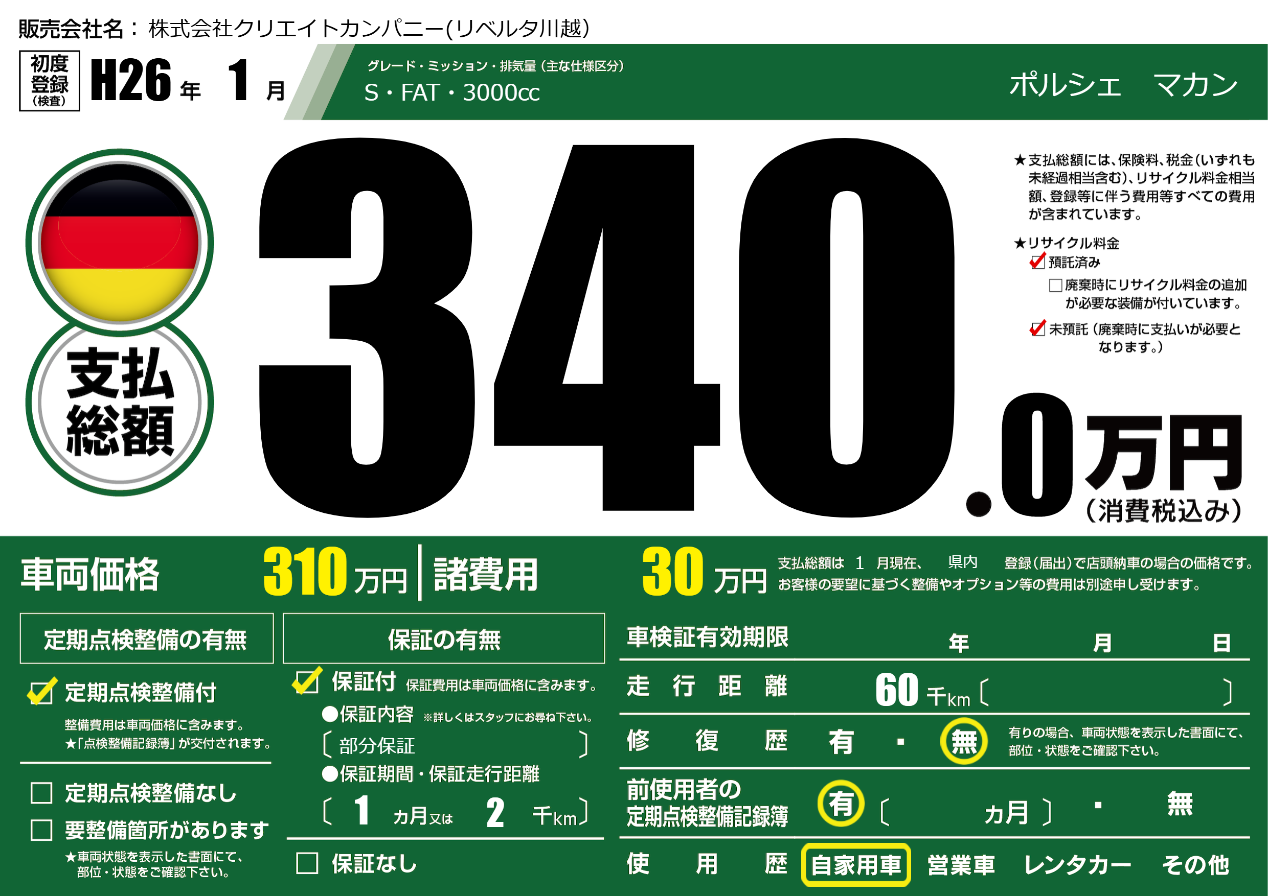 | 車名 | ポルシェ マカン | グレード ミッション 排気量 |