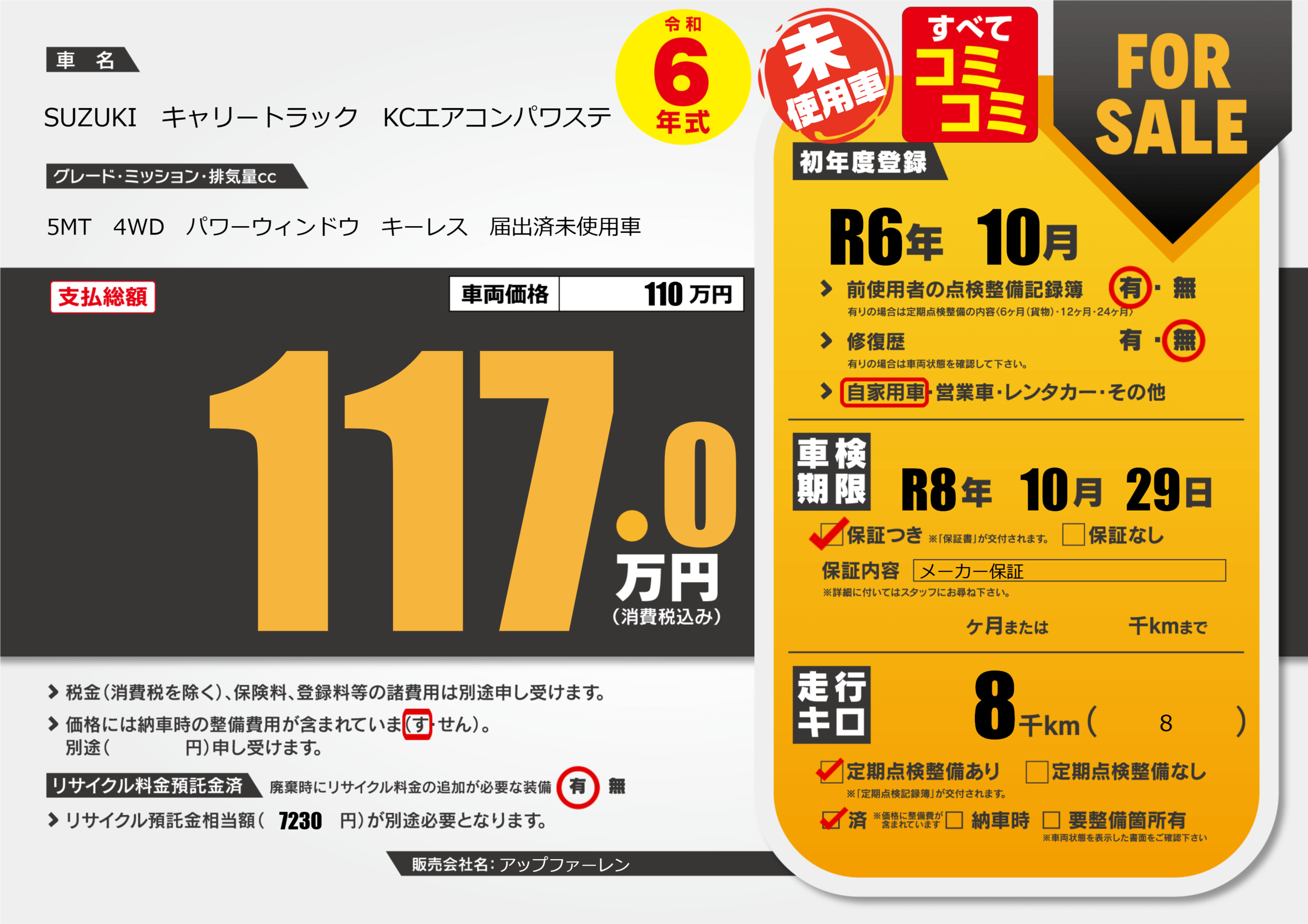 | 定期点検整備 | 定期点検整備あり 定期点検整備済み | ||