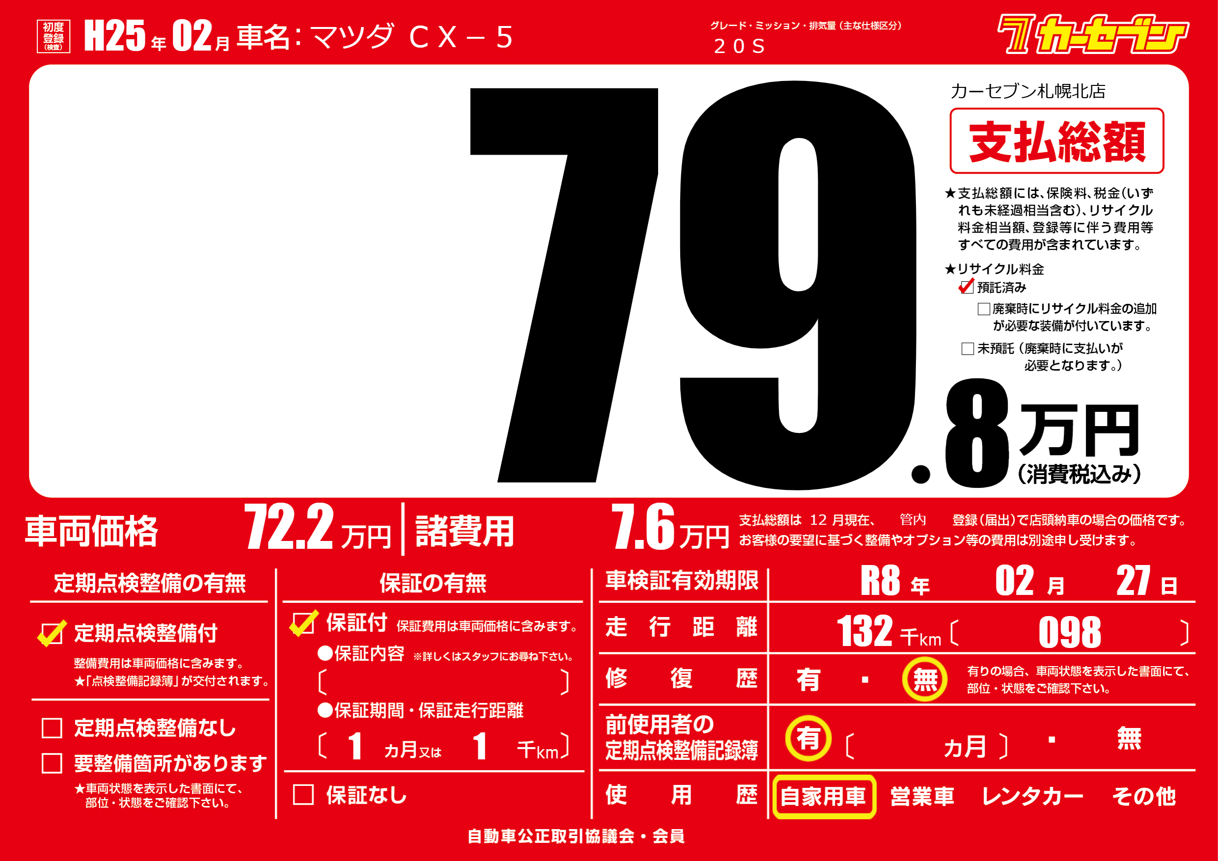 なし | 車検制限 | R8年02月27月 |