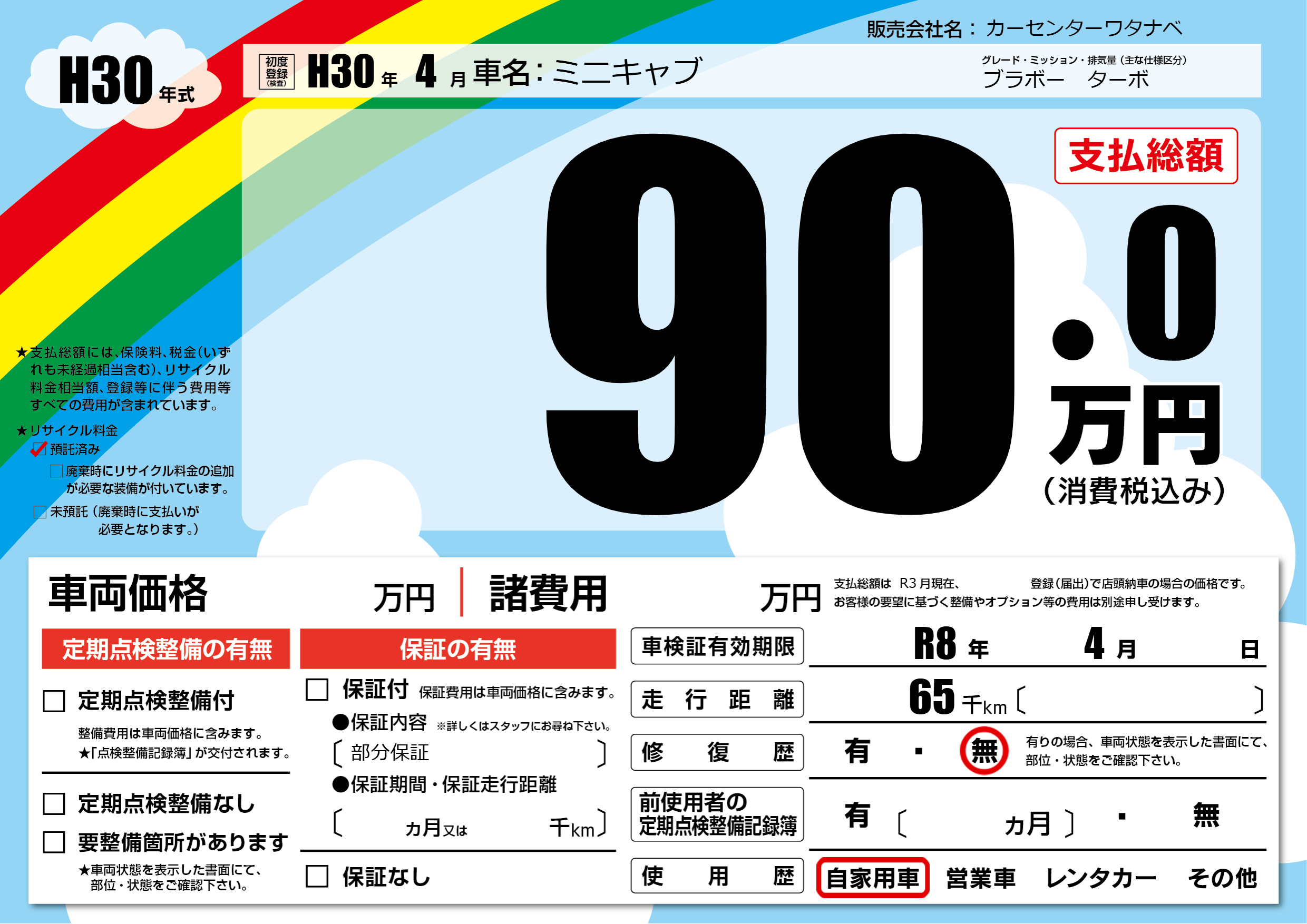 | 車名 | ミニキャブ | グレード ミッション 排気量 |