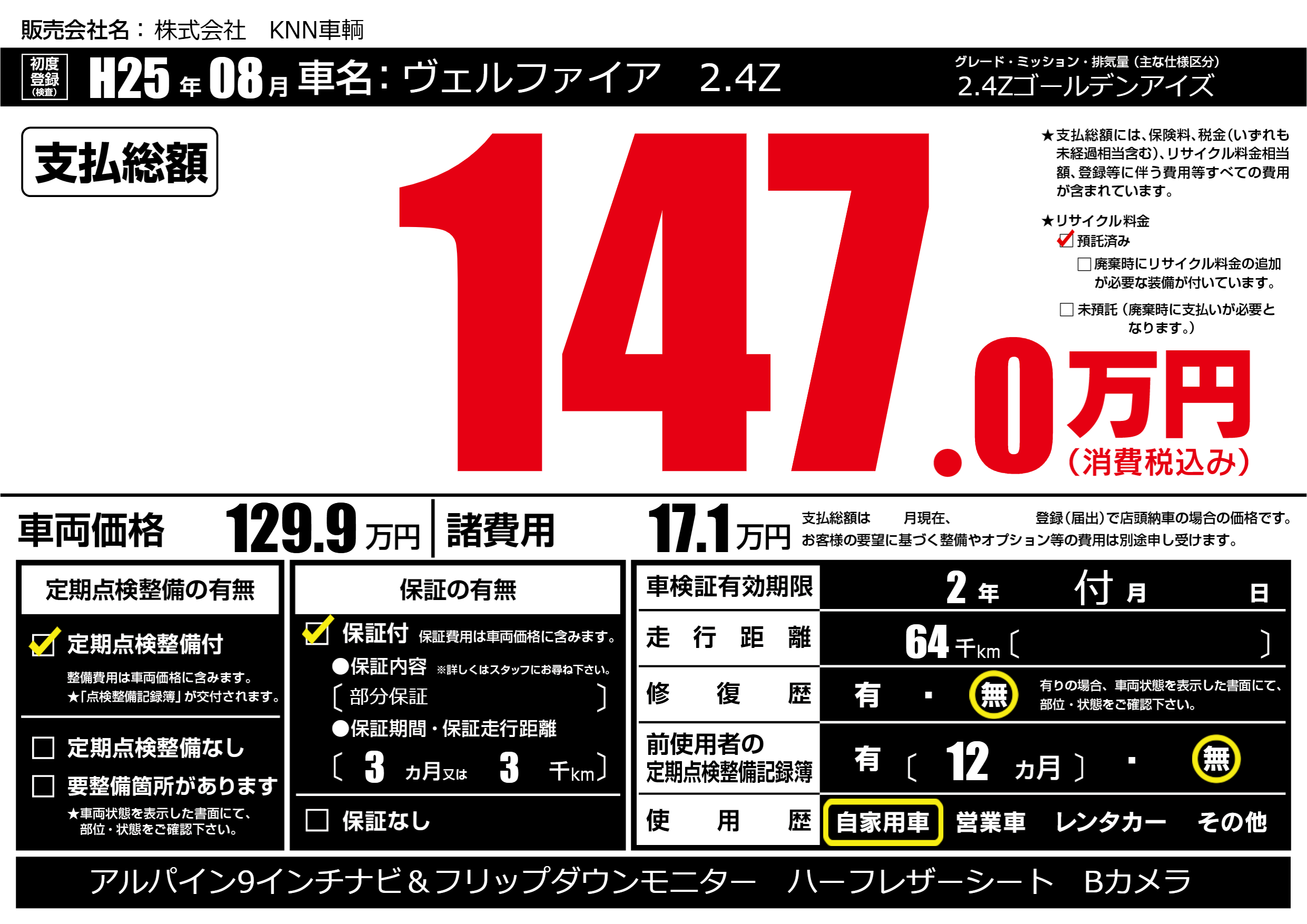 なし | 車検制限 | 2年付月---月 |