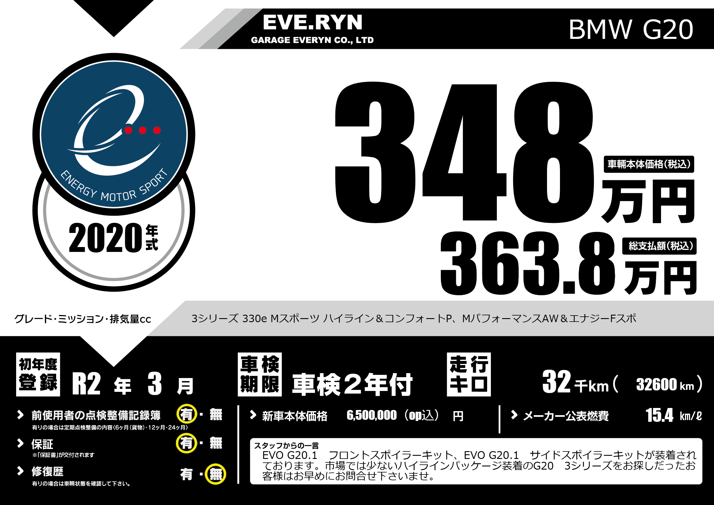| 車名 | BMW G20 | グレード ミッション 排気量 |