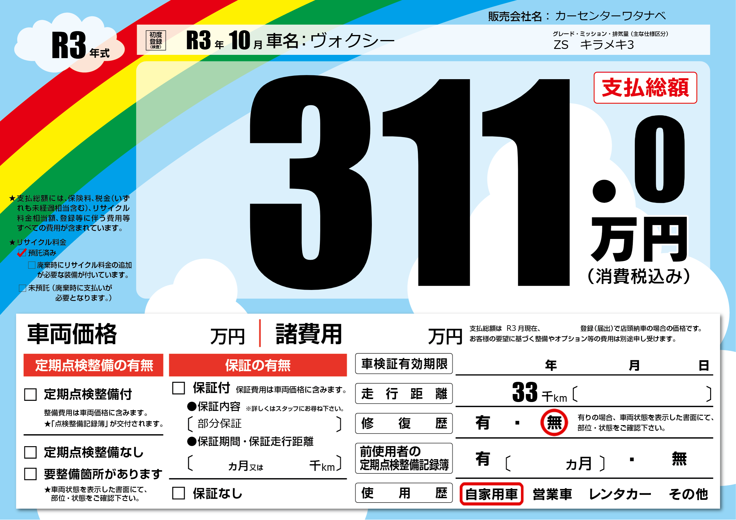 | 走行キロ | 3.3万km | 初年度登録 | R3年10月 |