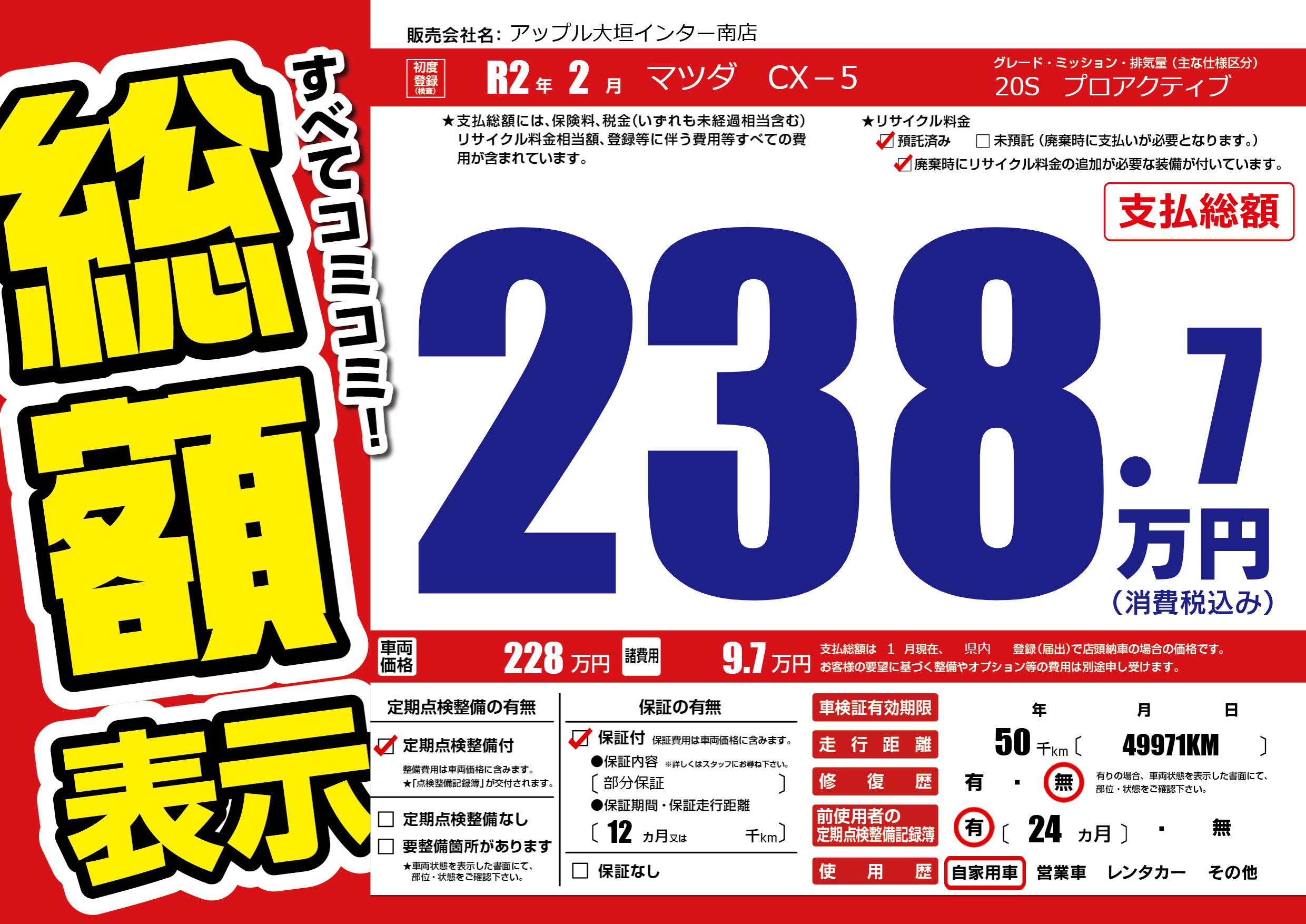 | 走行キロ | 5万km | 初年度登録 | R2年2月 |
