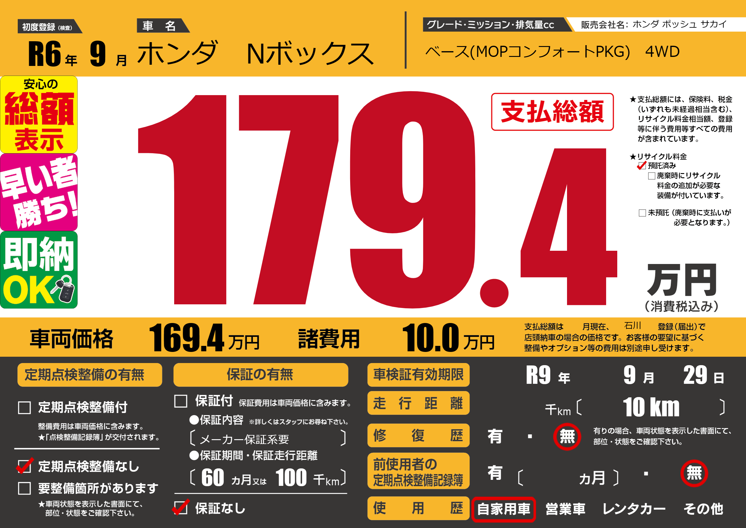 | 走行キロ | - | 初年度登録 | R6年9月 |