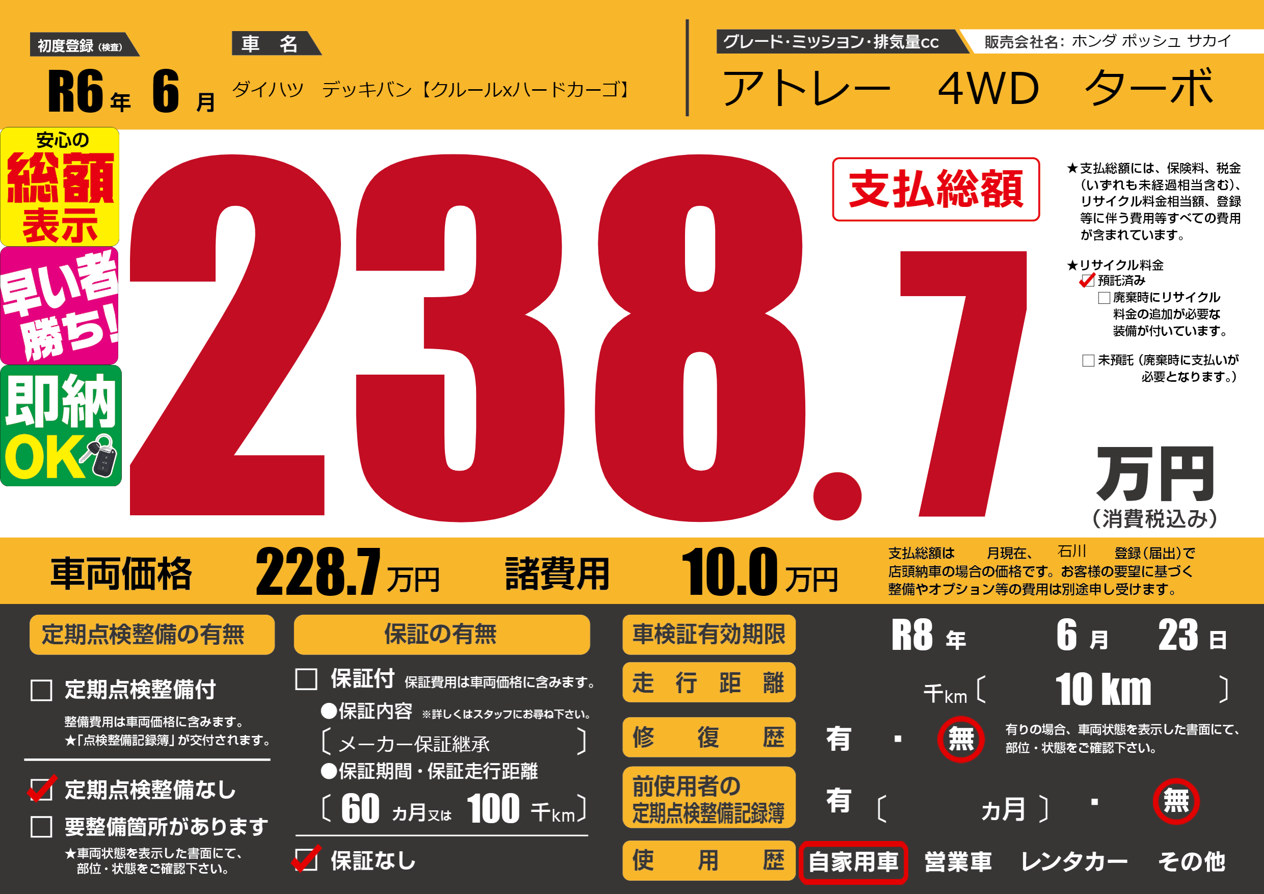 | 車検制限 | R8年 6月 23日 | ||