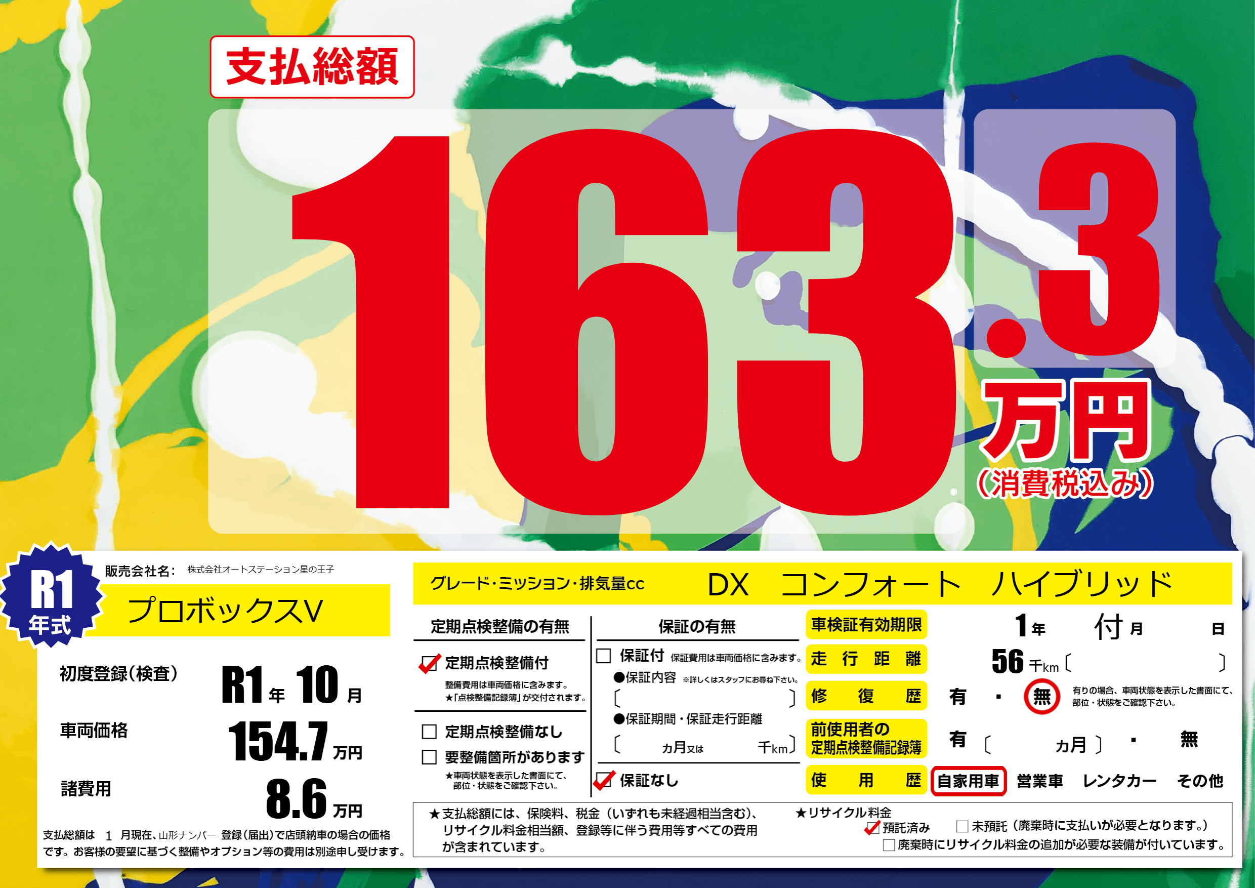 | 車名 | プロボックスV | グレード ミッション 排気量 |