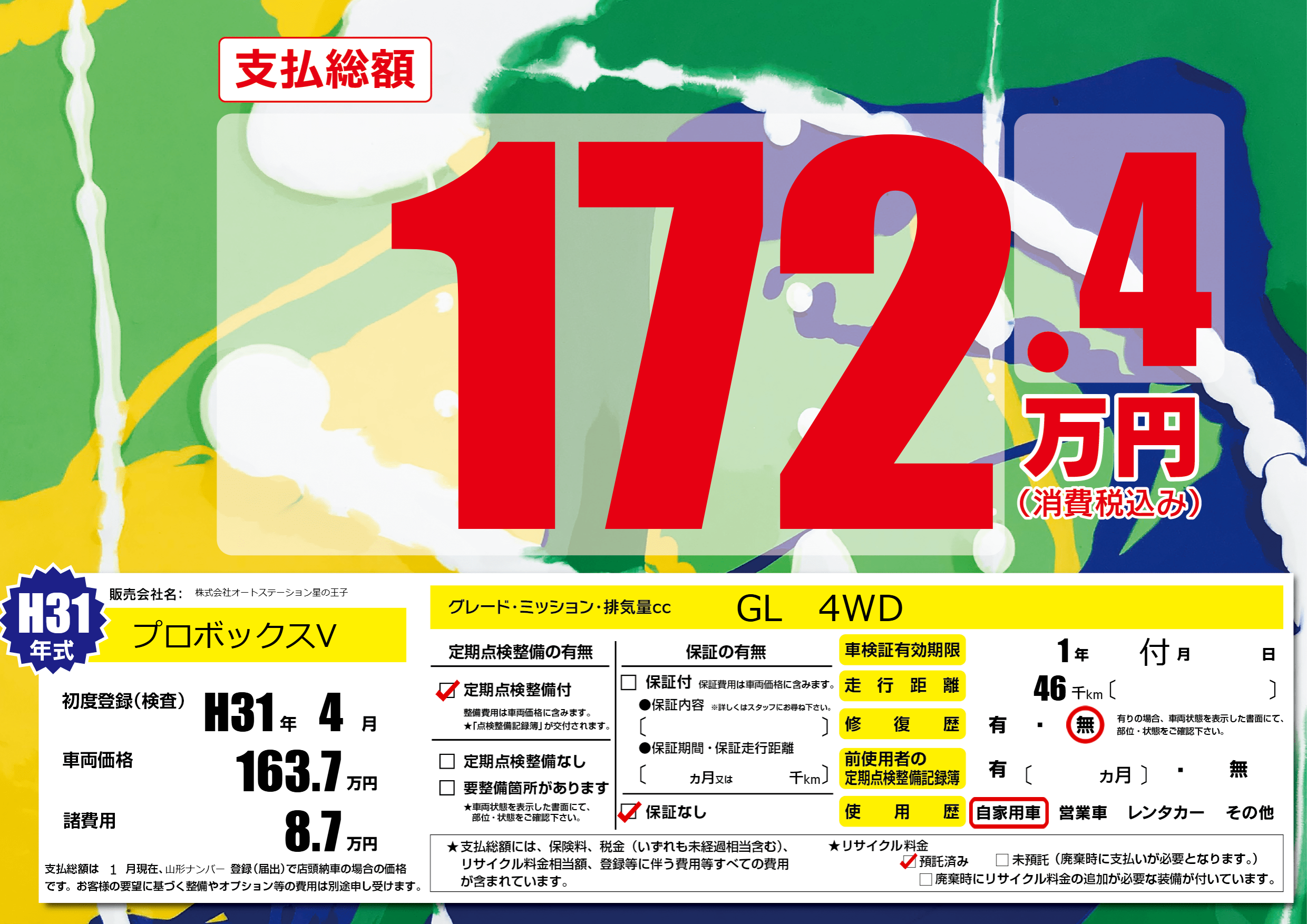 | 車名 | プロボックスV | グレード ミッション 排気量 |