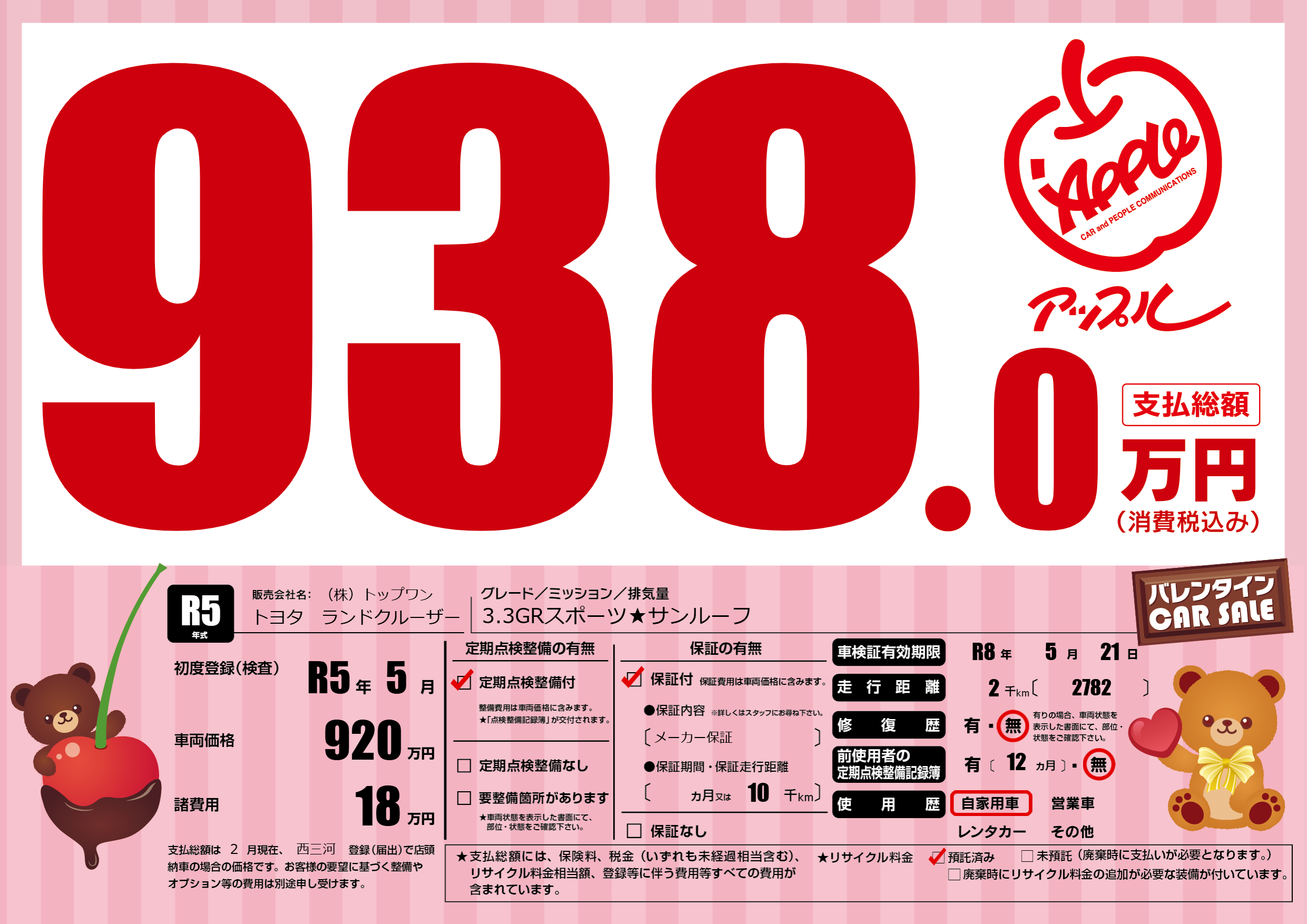 | 走行キロ | 0.2万km | 初年度登録 | R5年5月 |