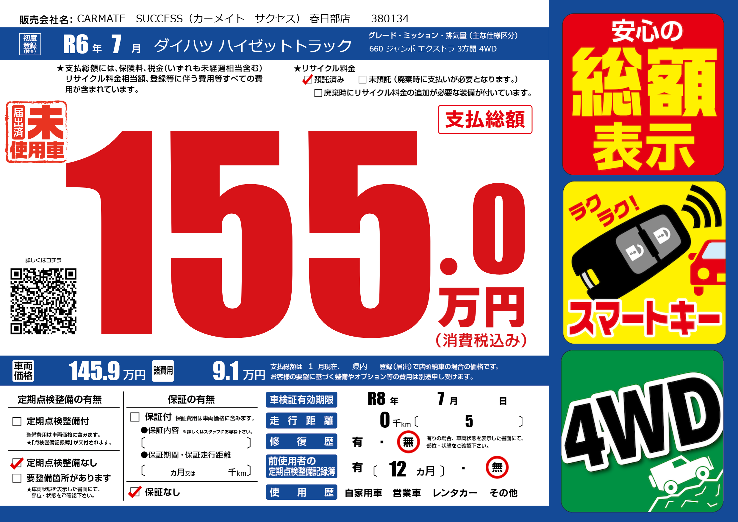 | 走行キロ | - | 初年度登録 | R6年7月 |