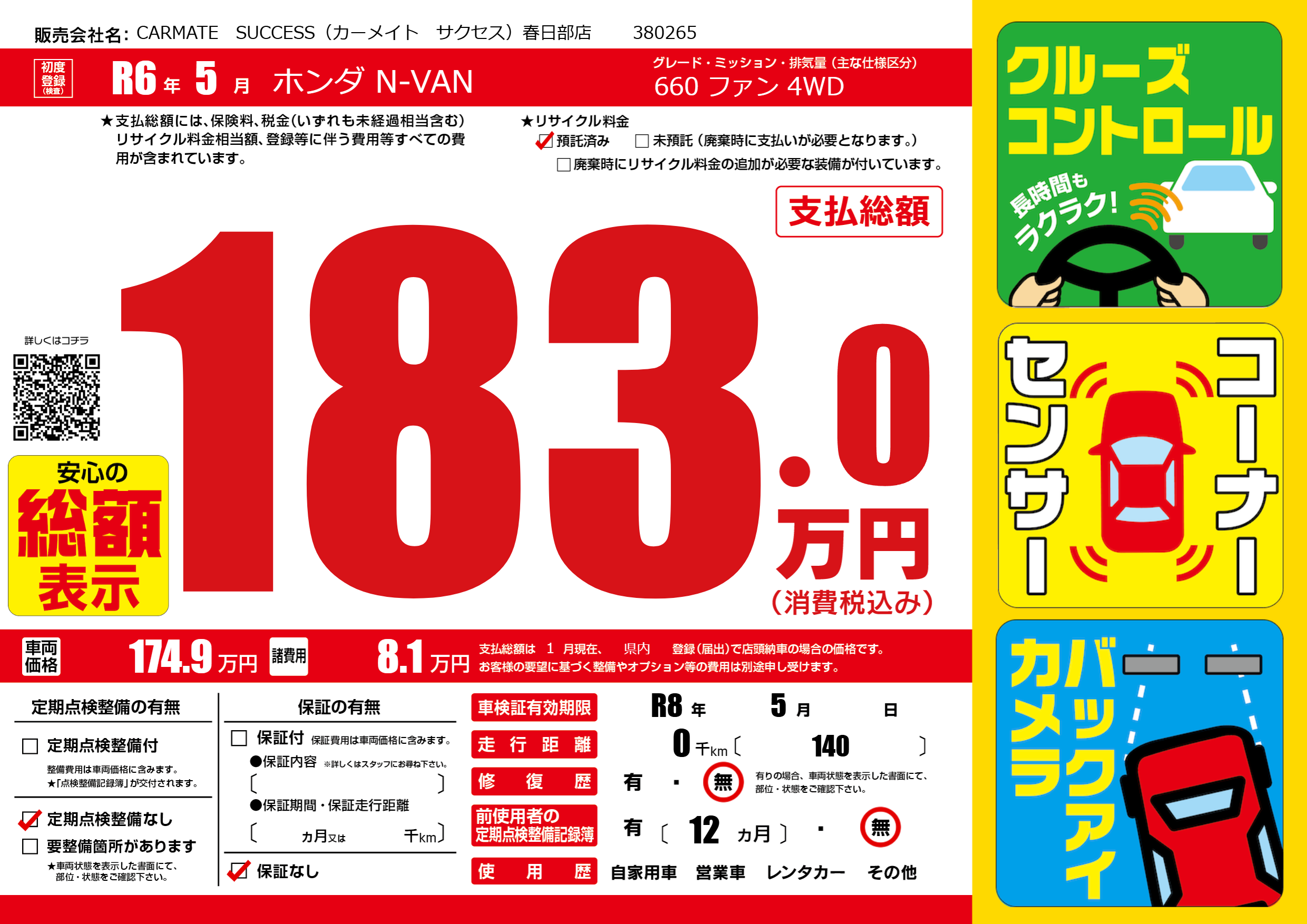 なし | 車検制限 | R8年5月---月 |