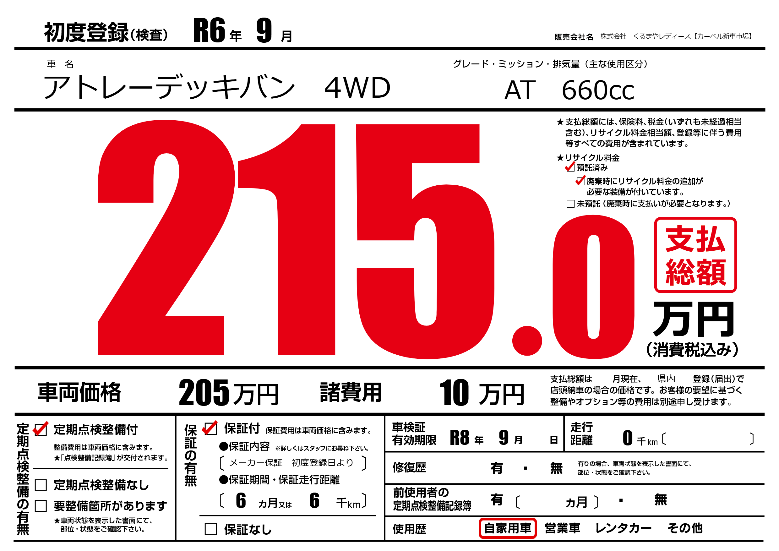 | 走行キロ | - | 初年度登録 | R6年9月 |
