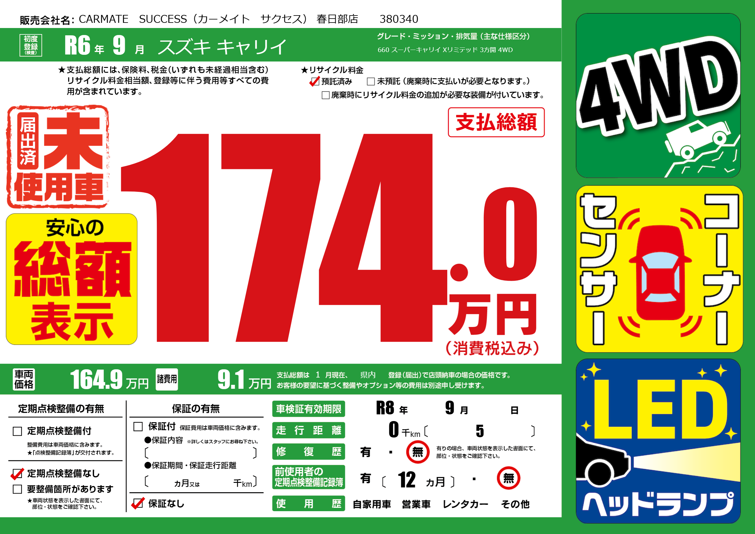 なし | 車検制限 | R8年9月---月 |
