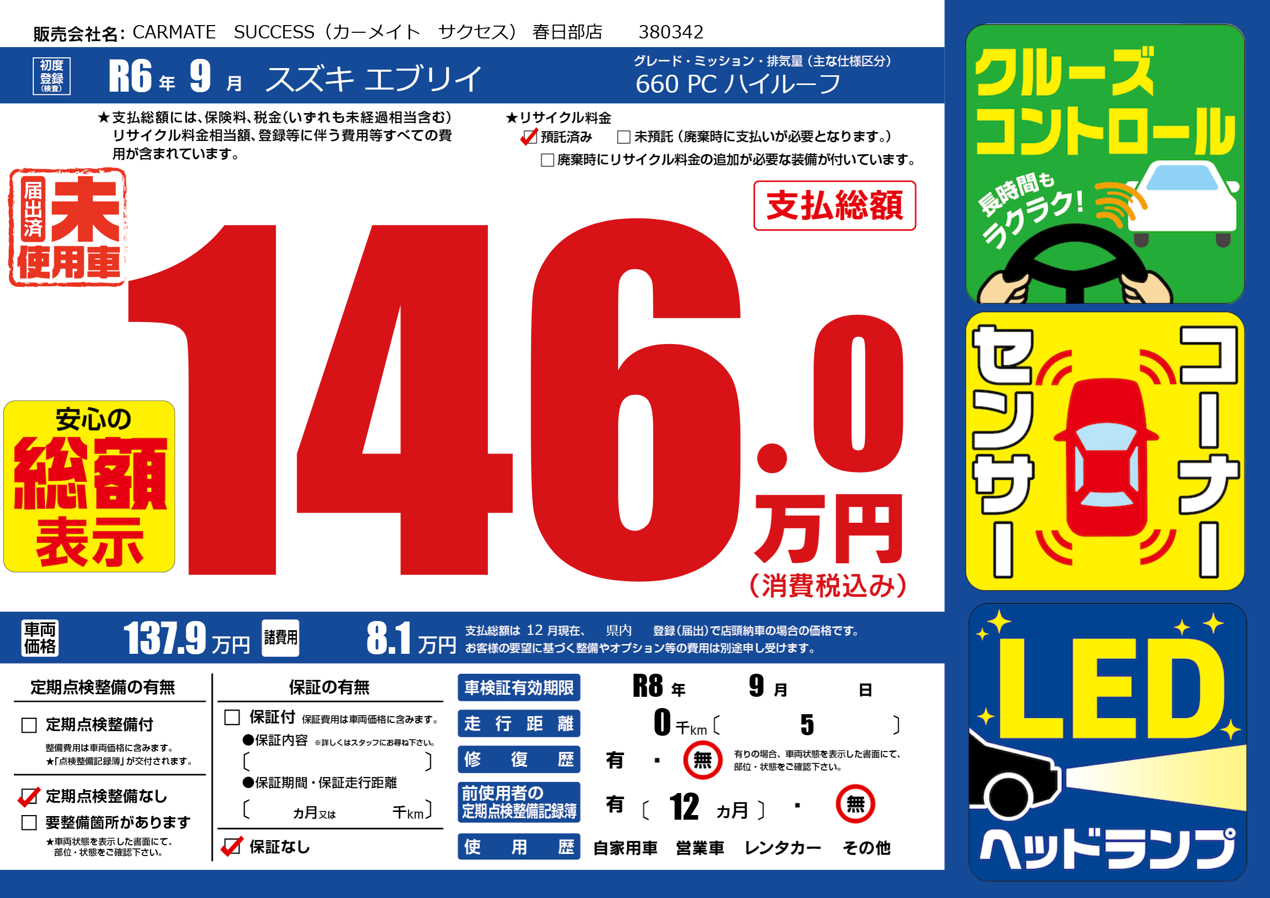 | 走行キロ | - | 初年度登録 | R6年9月 |