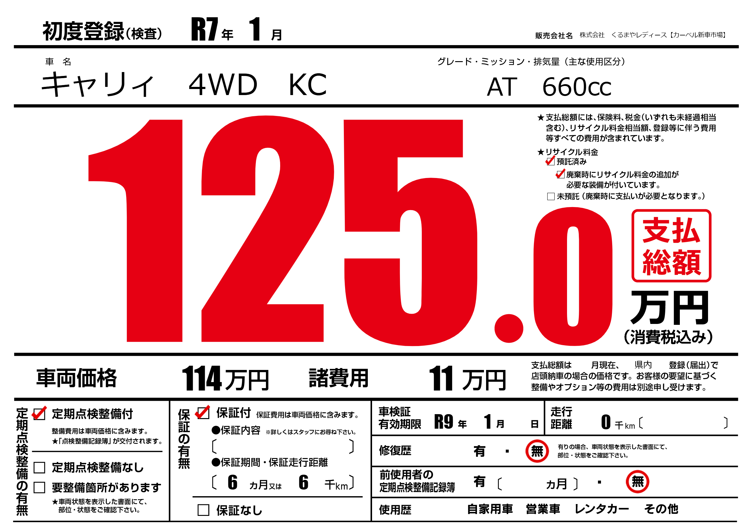 なし | 車検制限 | R9年1月---月 |