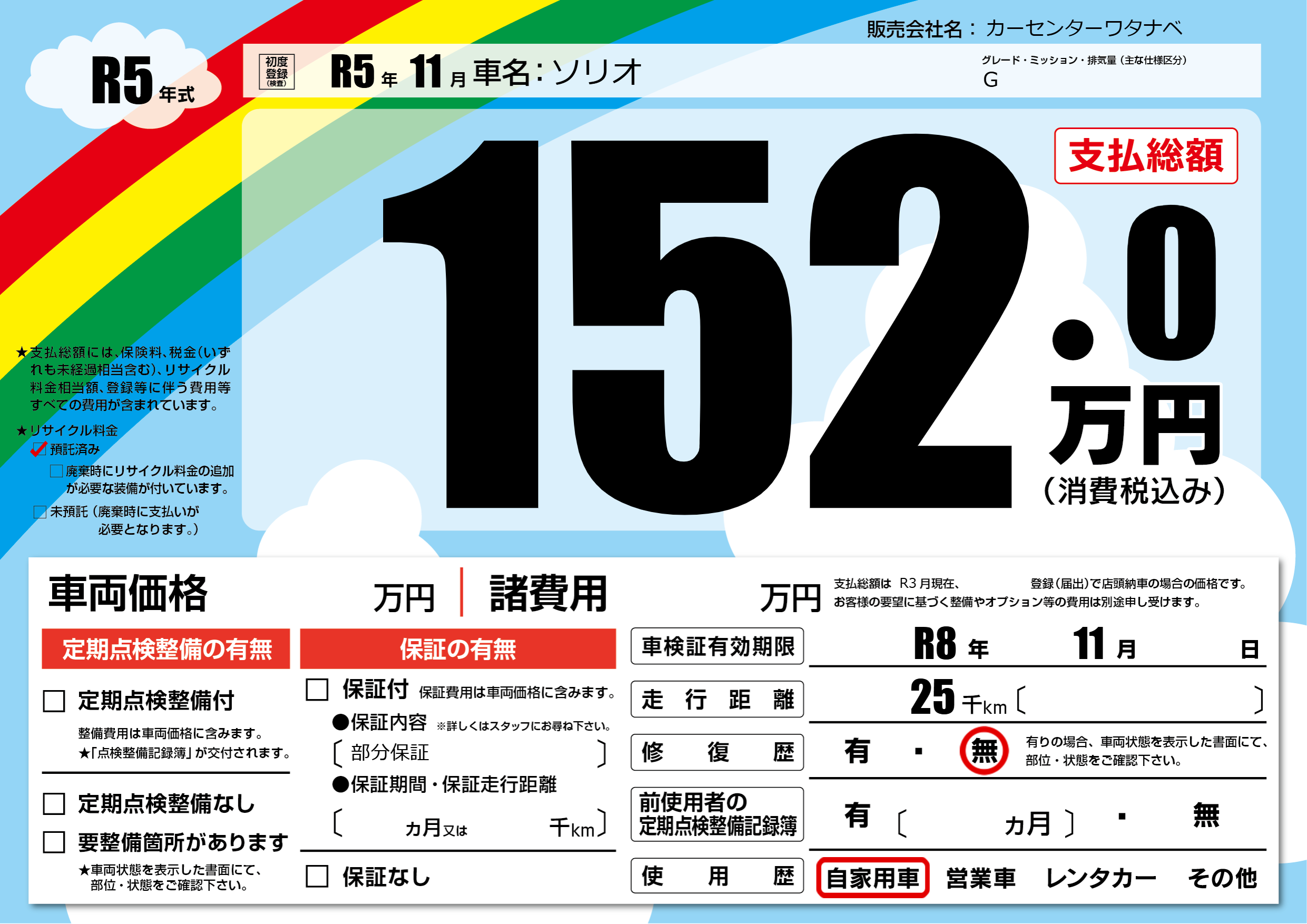 | 車検制限 | R8年 11月 - 日 | ||