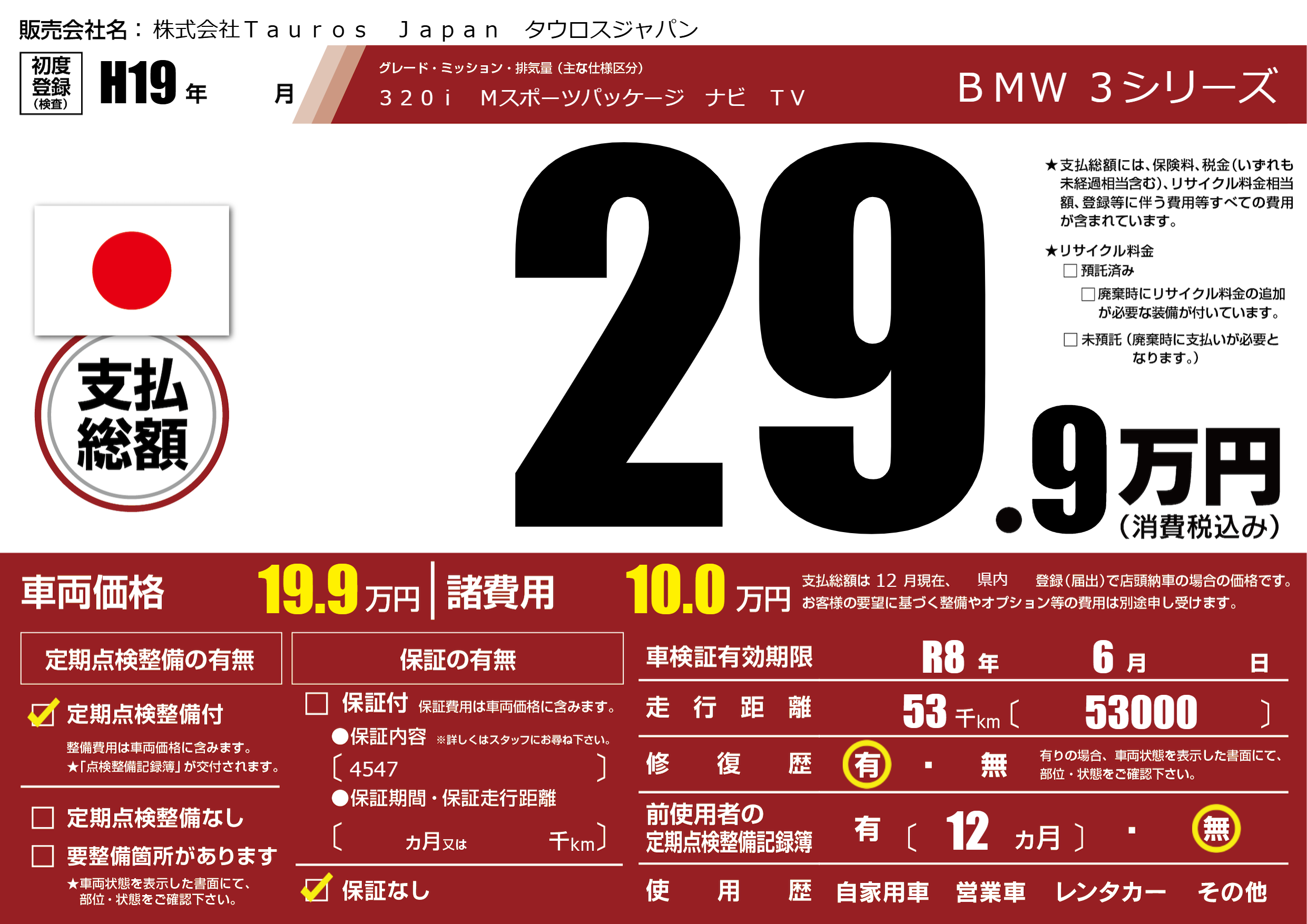 | 定期点検整備 | 定期点検整備あり | ||