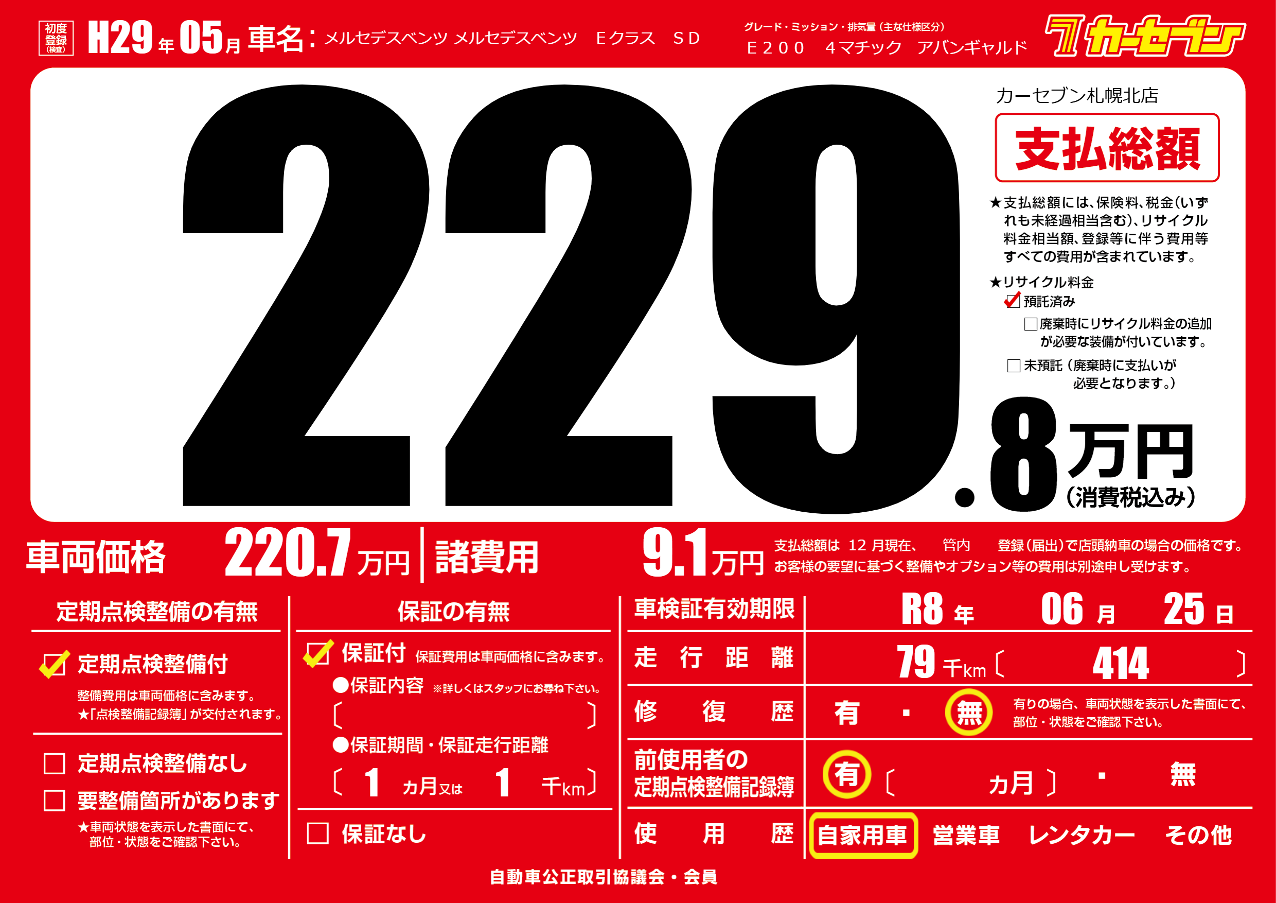 車検制限 R8年 06月 25日