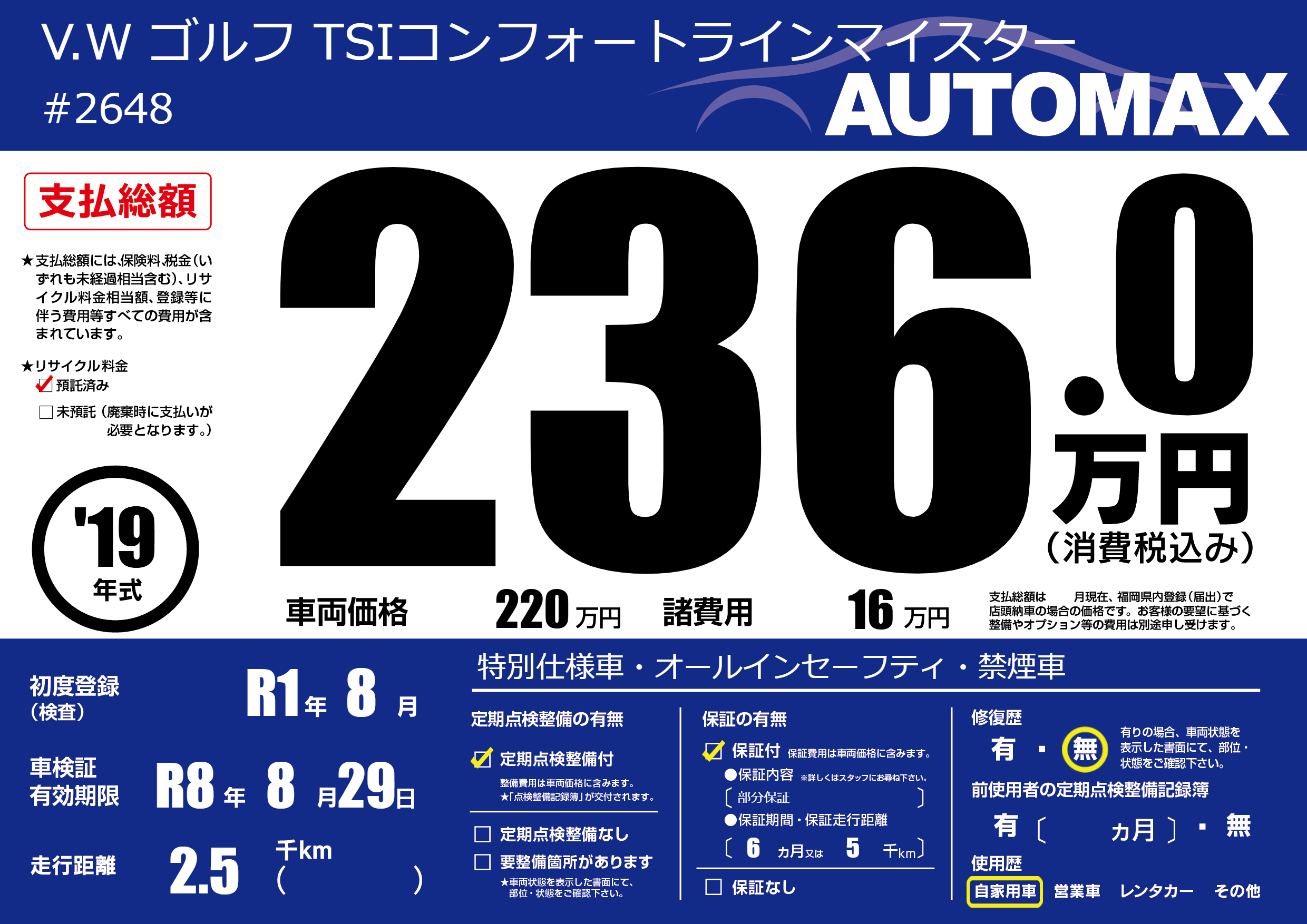 | 車検制限 | R8年 8月 29日 | ||