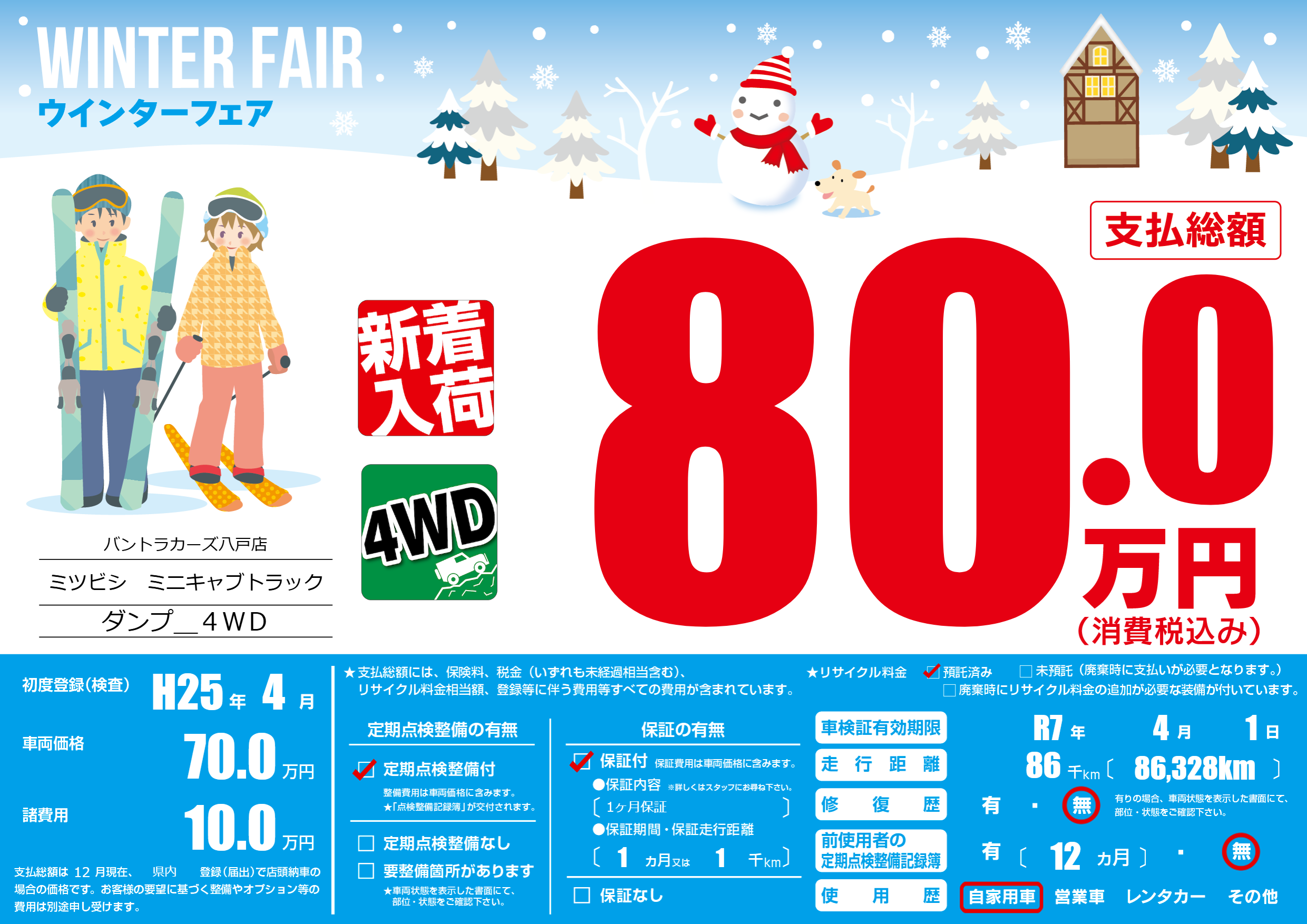 | 走行キロ | 8.6万km | 初年度登録 | H25年4月 |