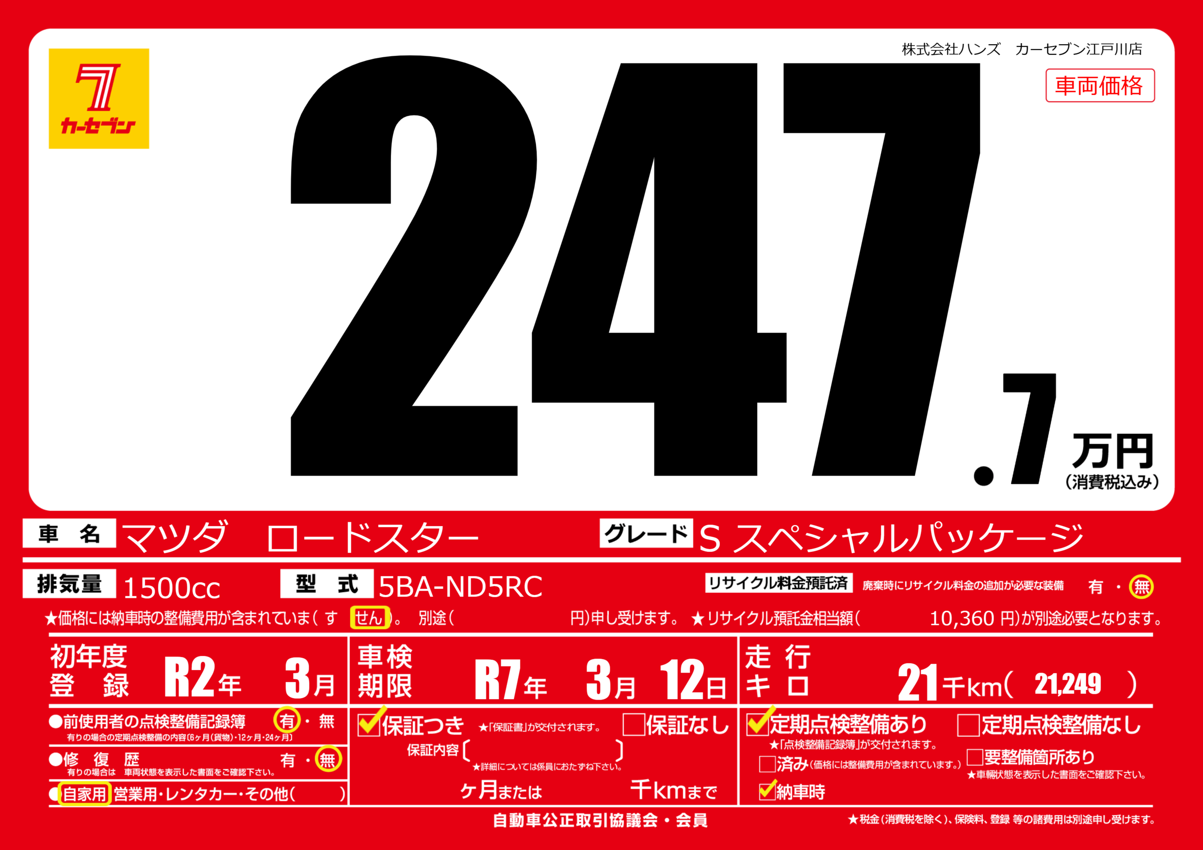 なし | 車検制限 | R7年3月12月 |