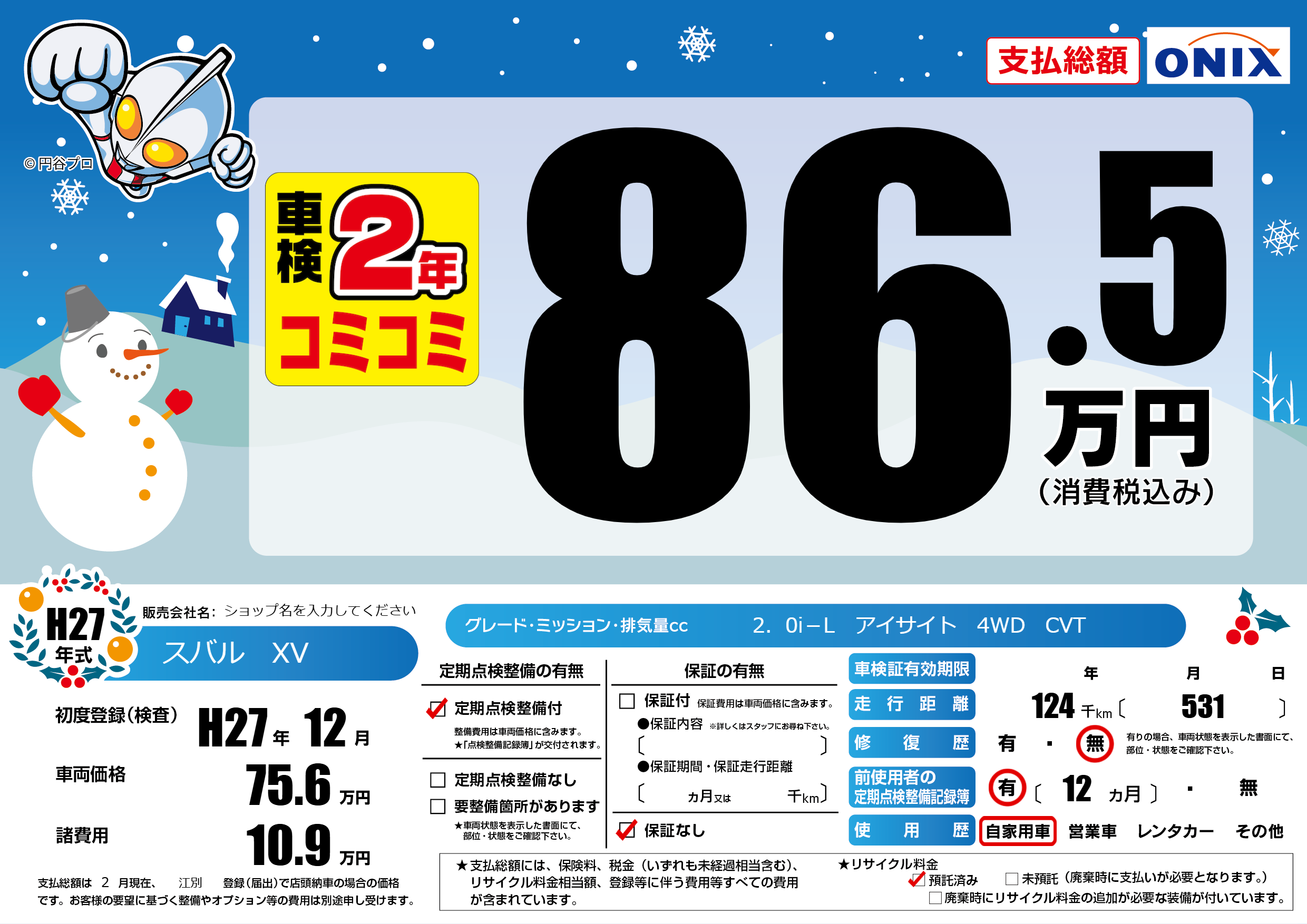 | 定期点検整備 | 定期点検整備あり | ||