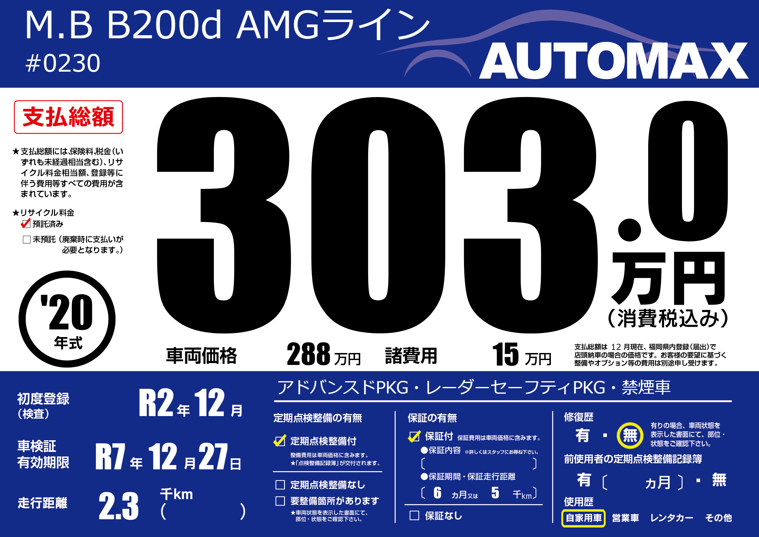 | 車検制限 | R7年 12月 27日 | ||