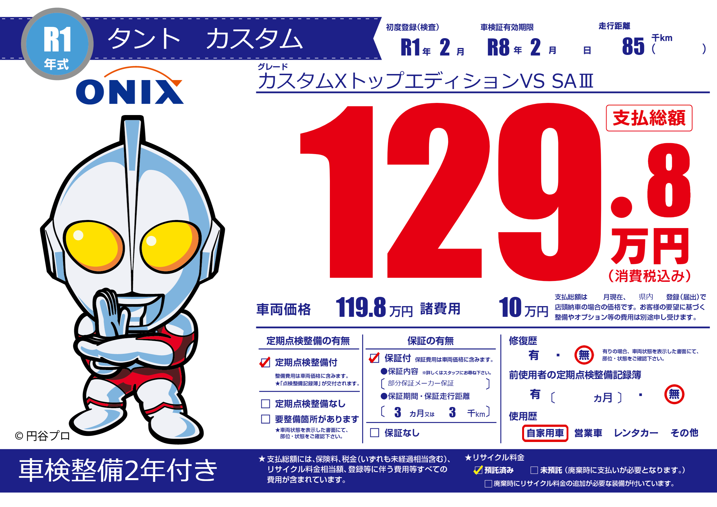 | 車検制限 | R8年 2月 - 日 | ||