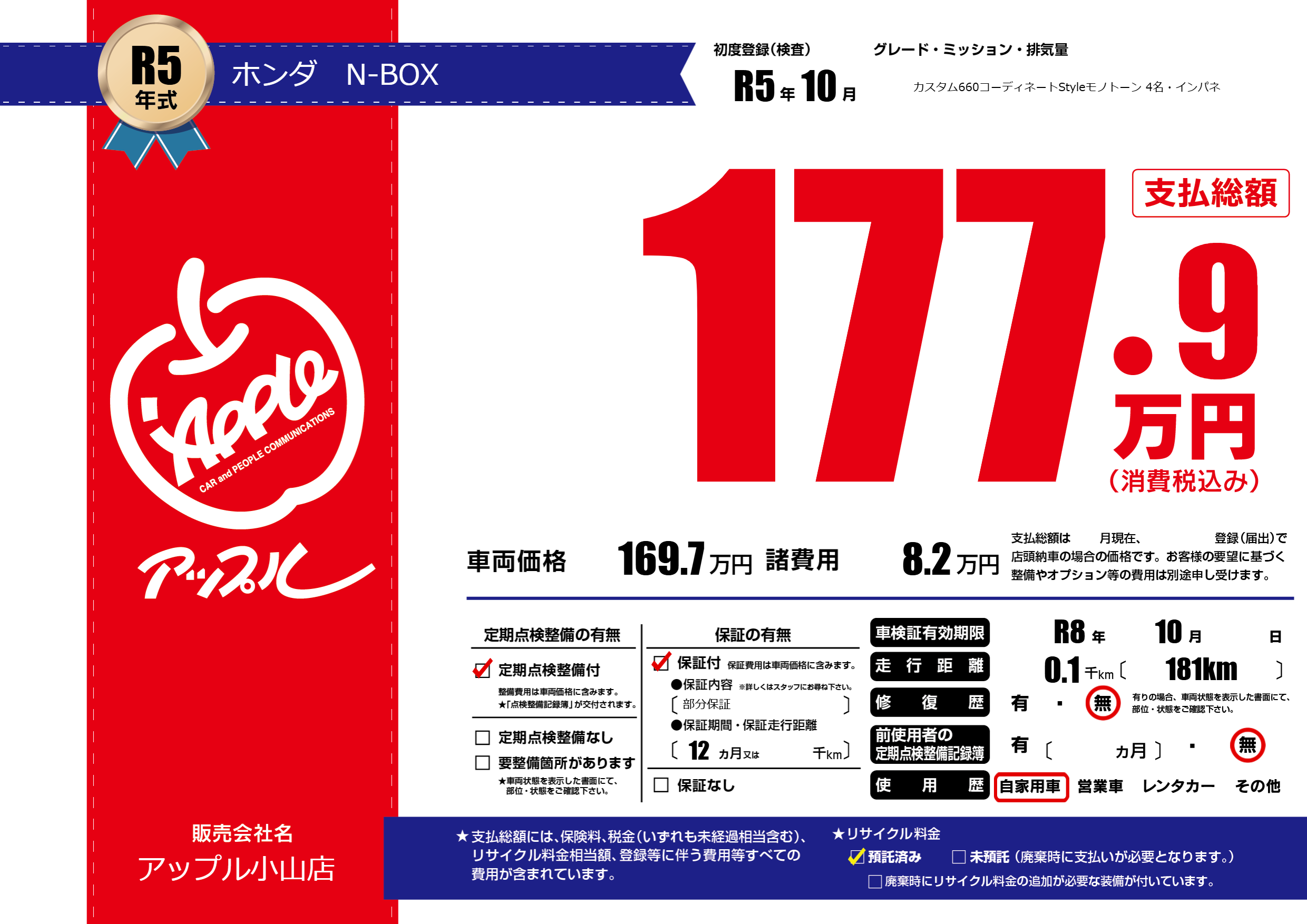 | 走行キロ | - | 初年度登録 | R5年10月 |