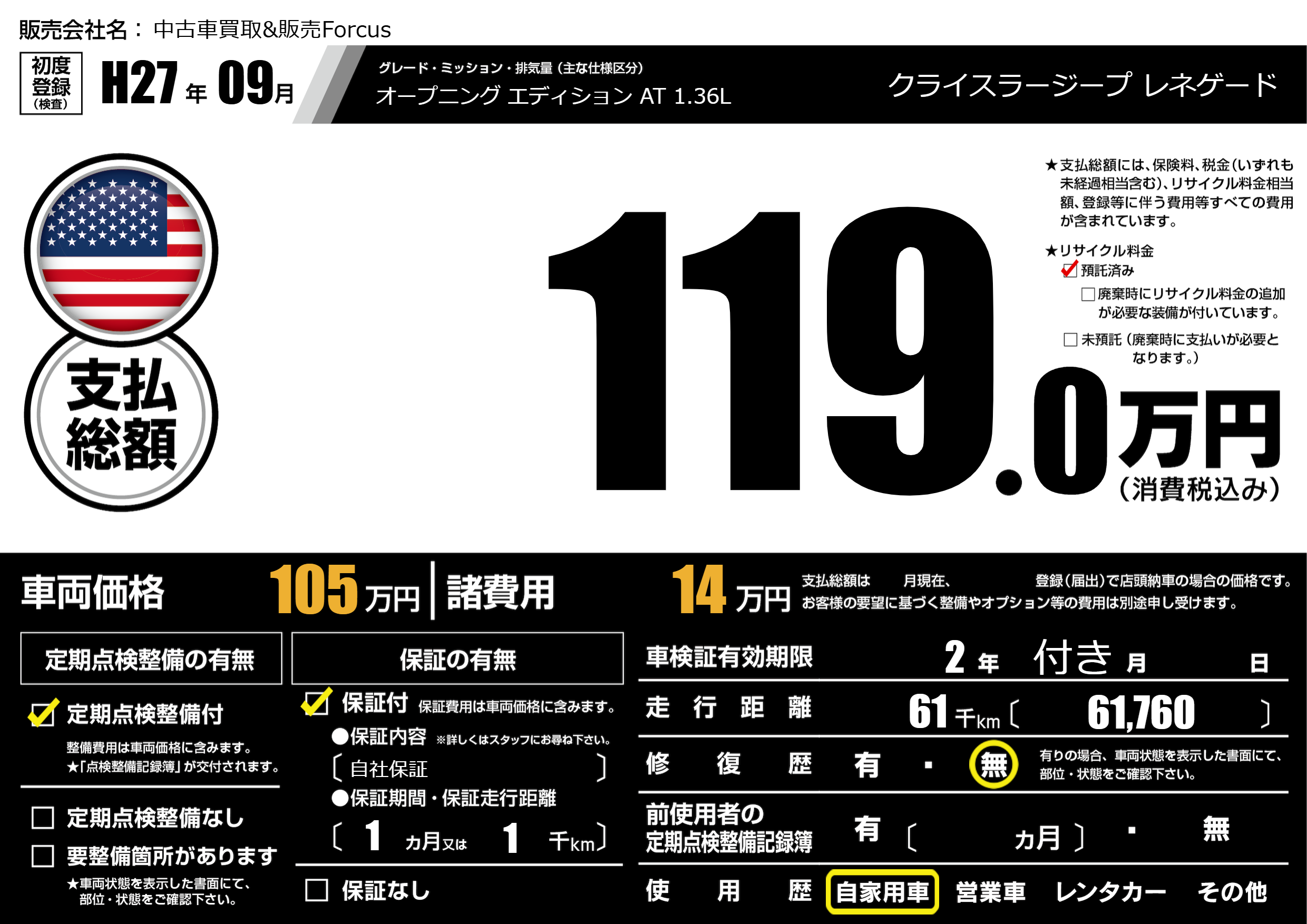 なし | 車検制限 | 2年付き月---月 |