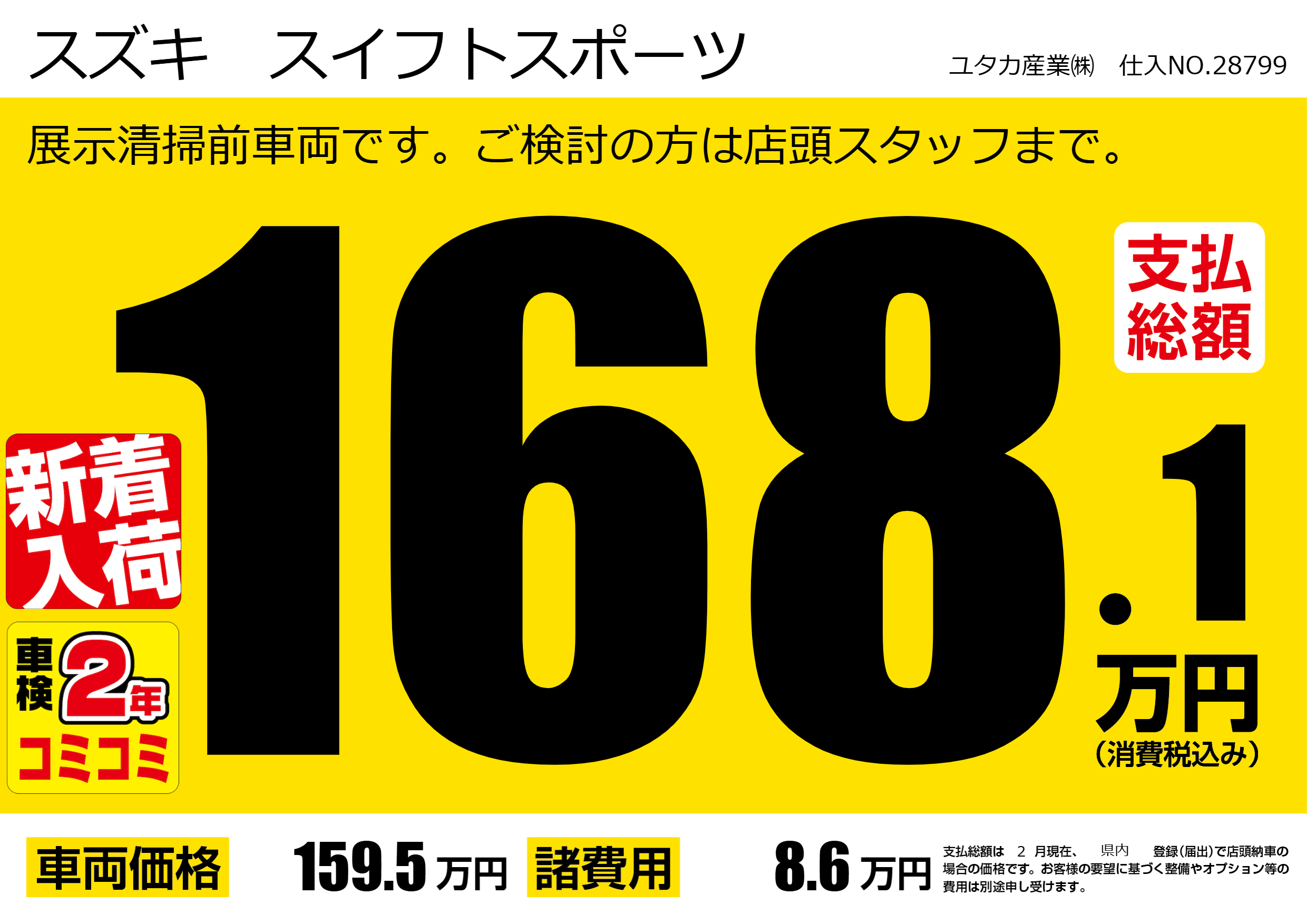 | 車名 | スズキ スイフトスポーツ | グレード ミッション 排気量 |
