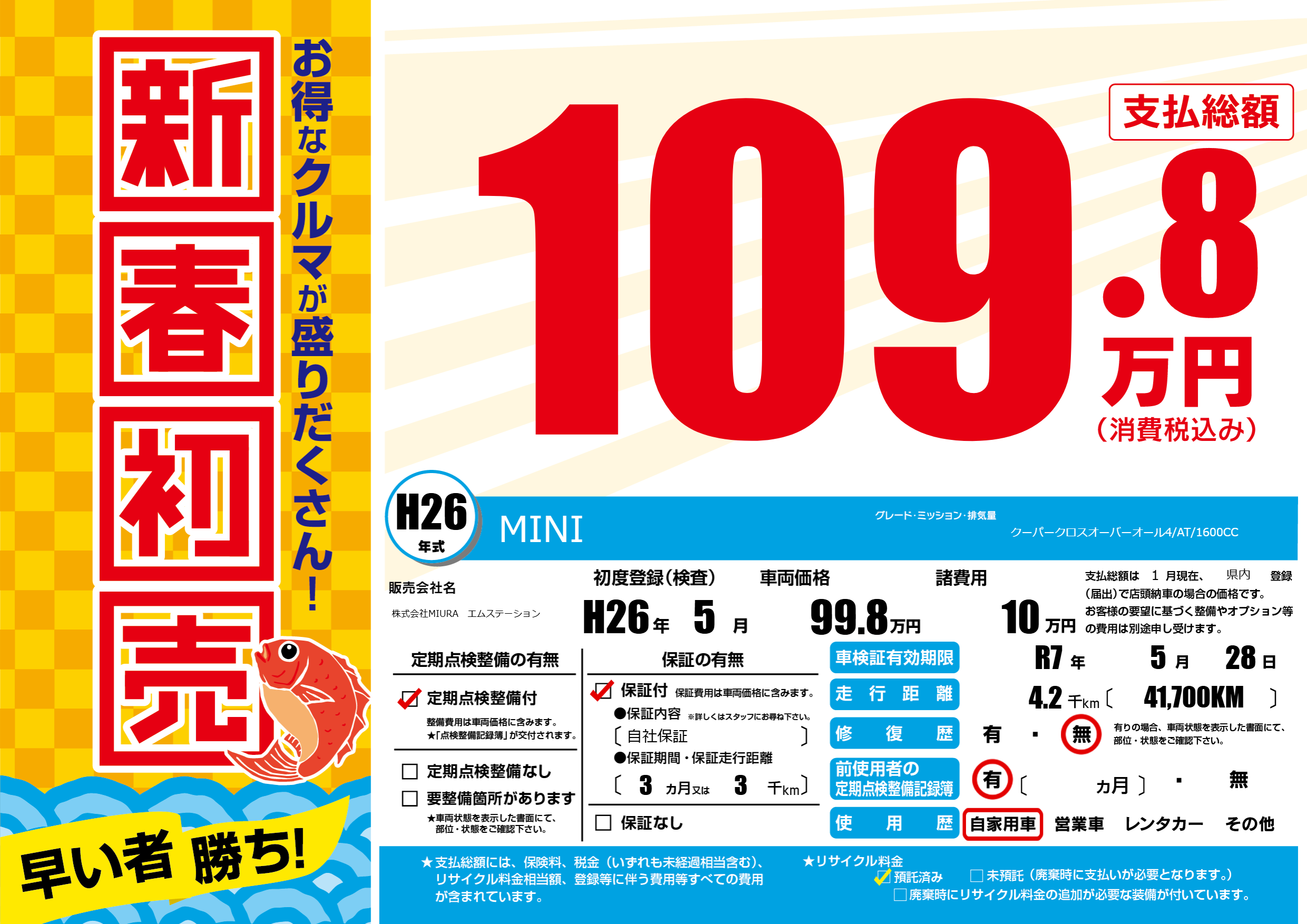 | 車検制限 | R7年 5月 28日 | ||