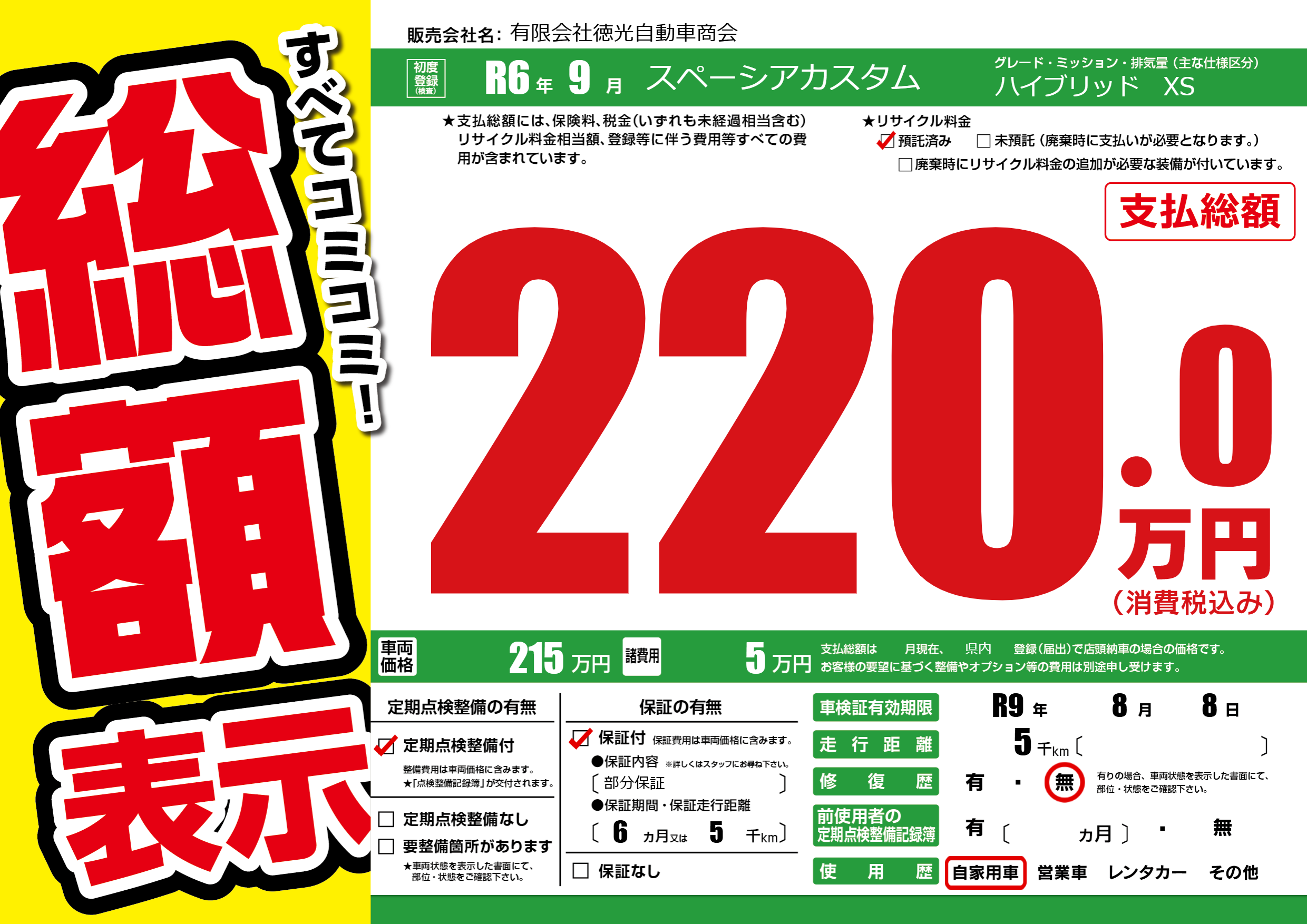 | 車名 | スペーシアカスタム | グレード ミッション 排気量 |