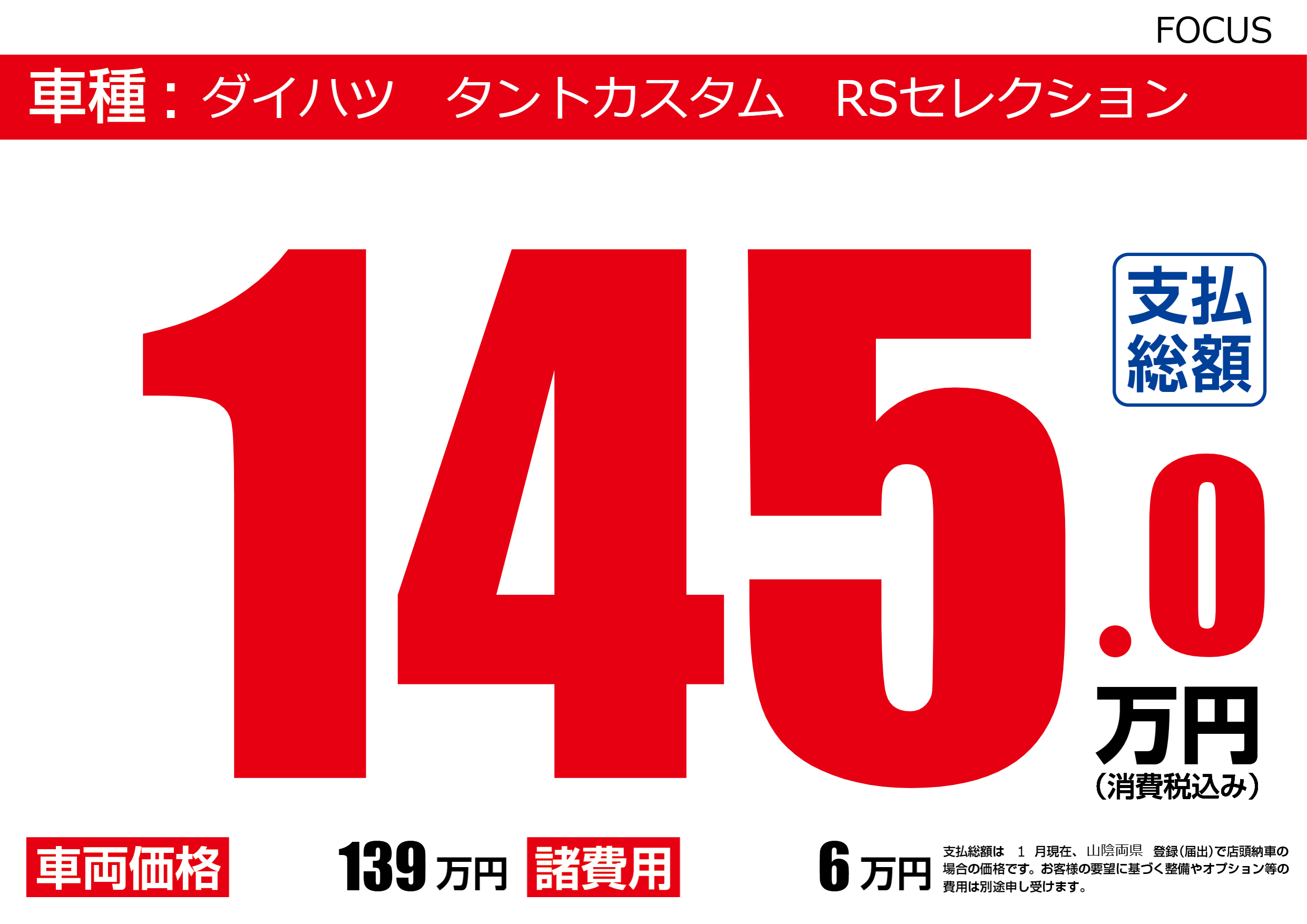 | 車名 | ダイハツ タントカスタム RSセレクション | グレード ミッション 排気量 |