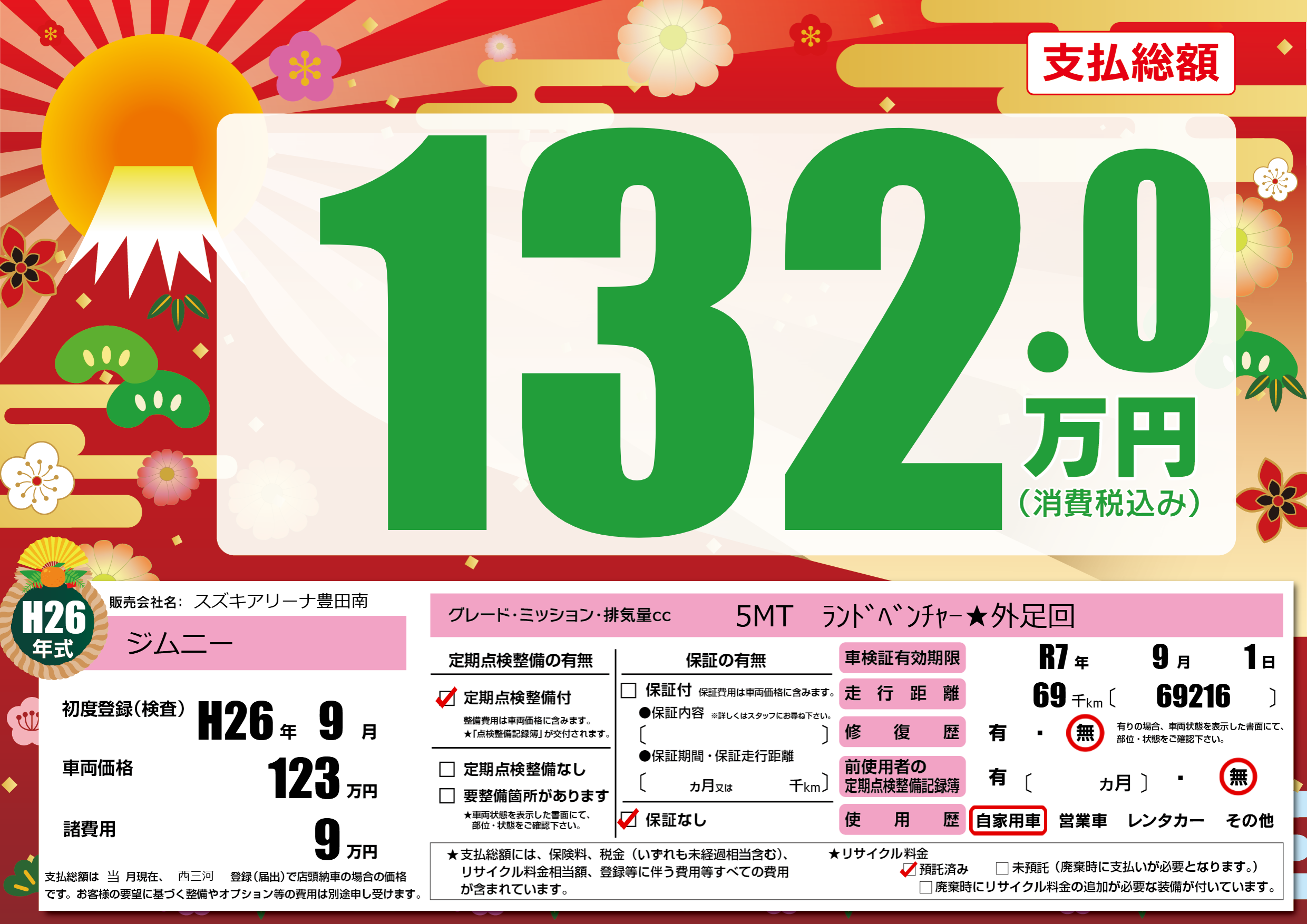 | 車名 | ジムニー | グレード ミッション 排気量 |