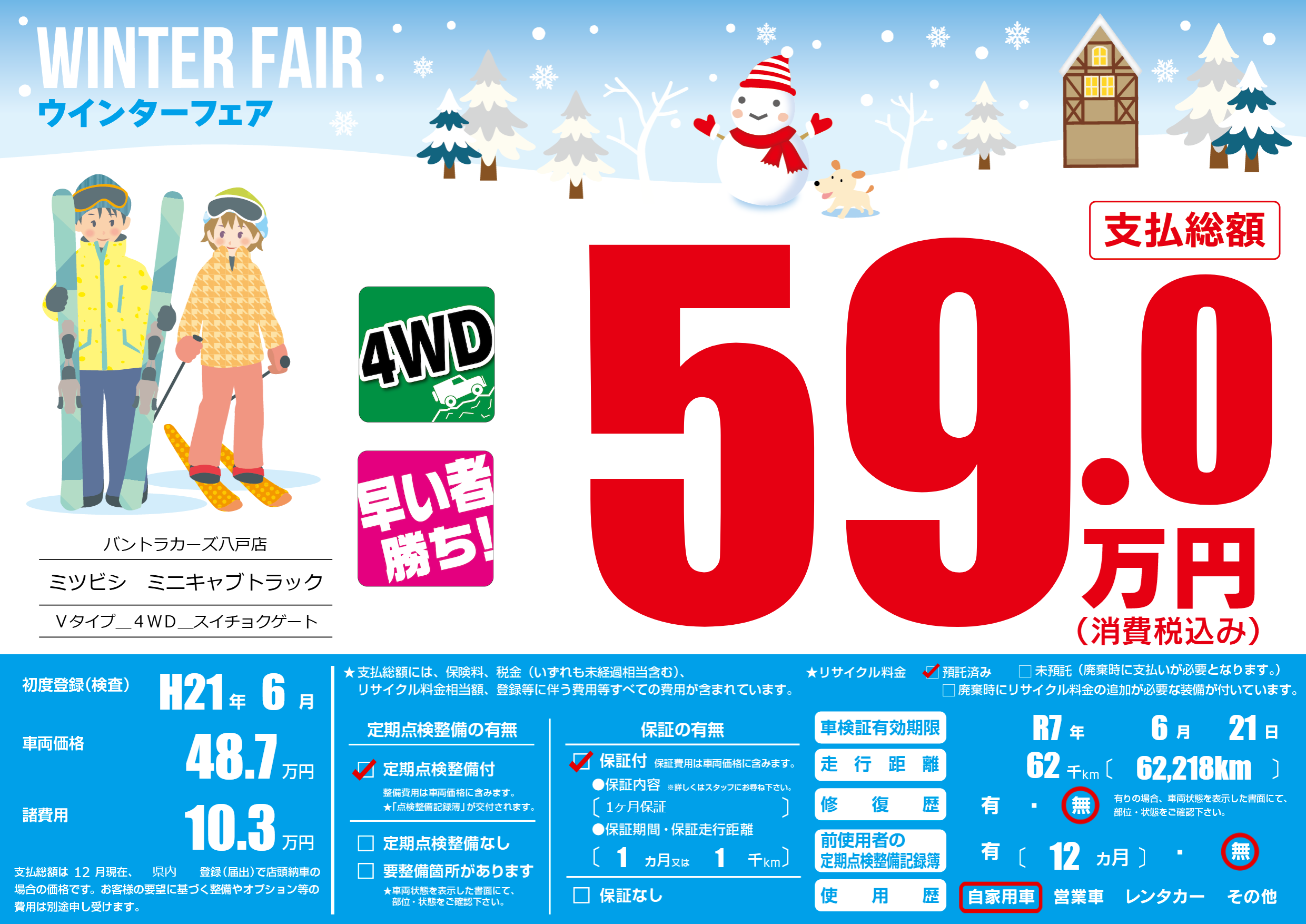 | 走行キロ | 6.2万km | 初年度登録 | H21年6月 |