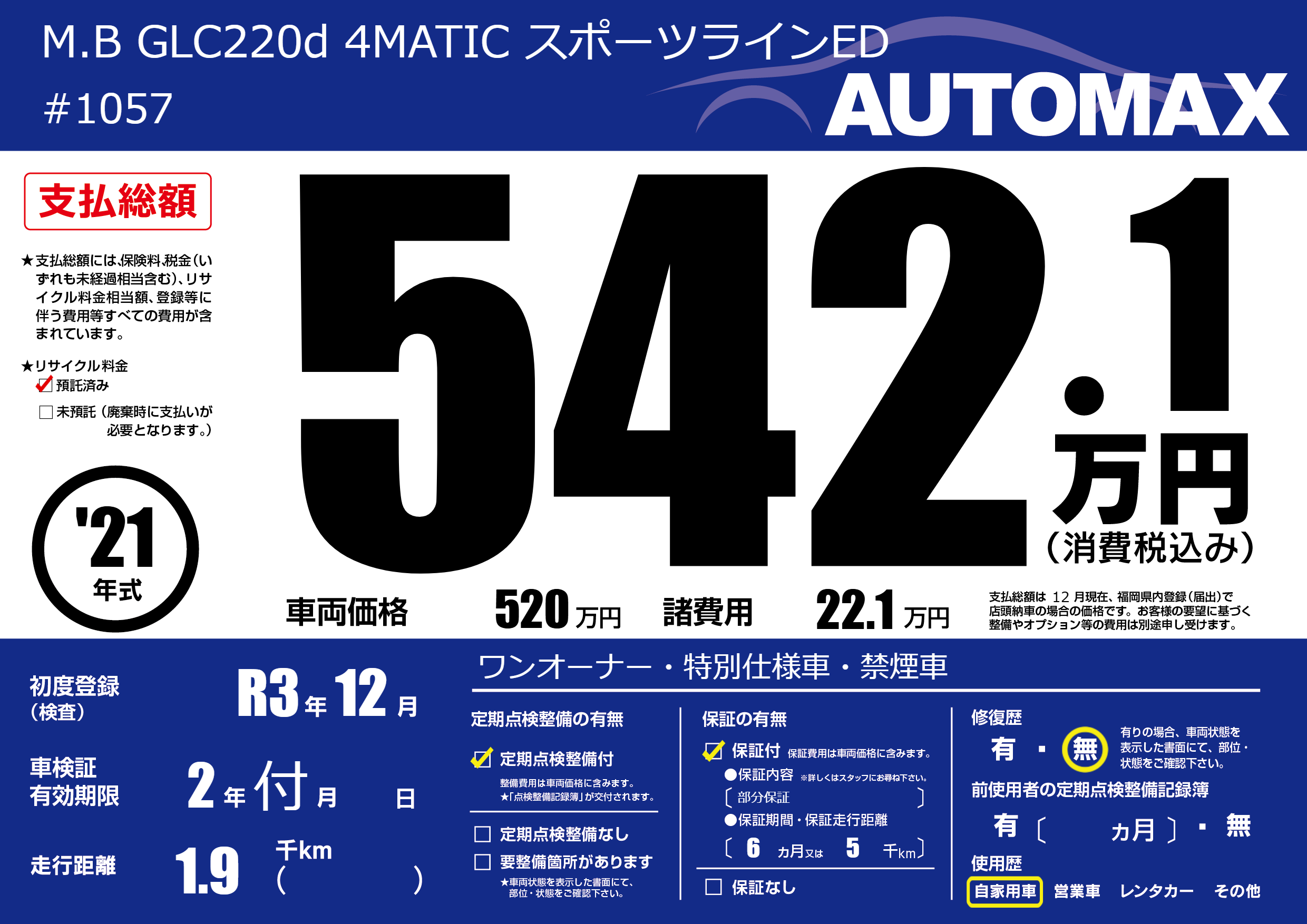 M.B GLC220d 4MATIC スポーツラインED