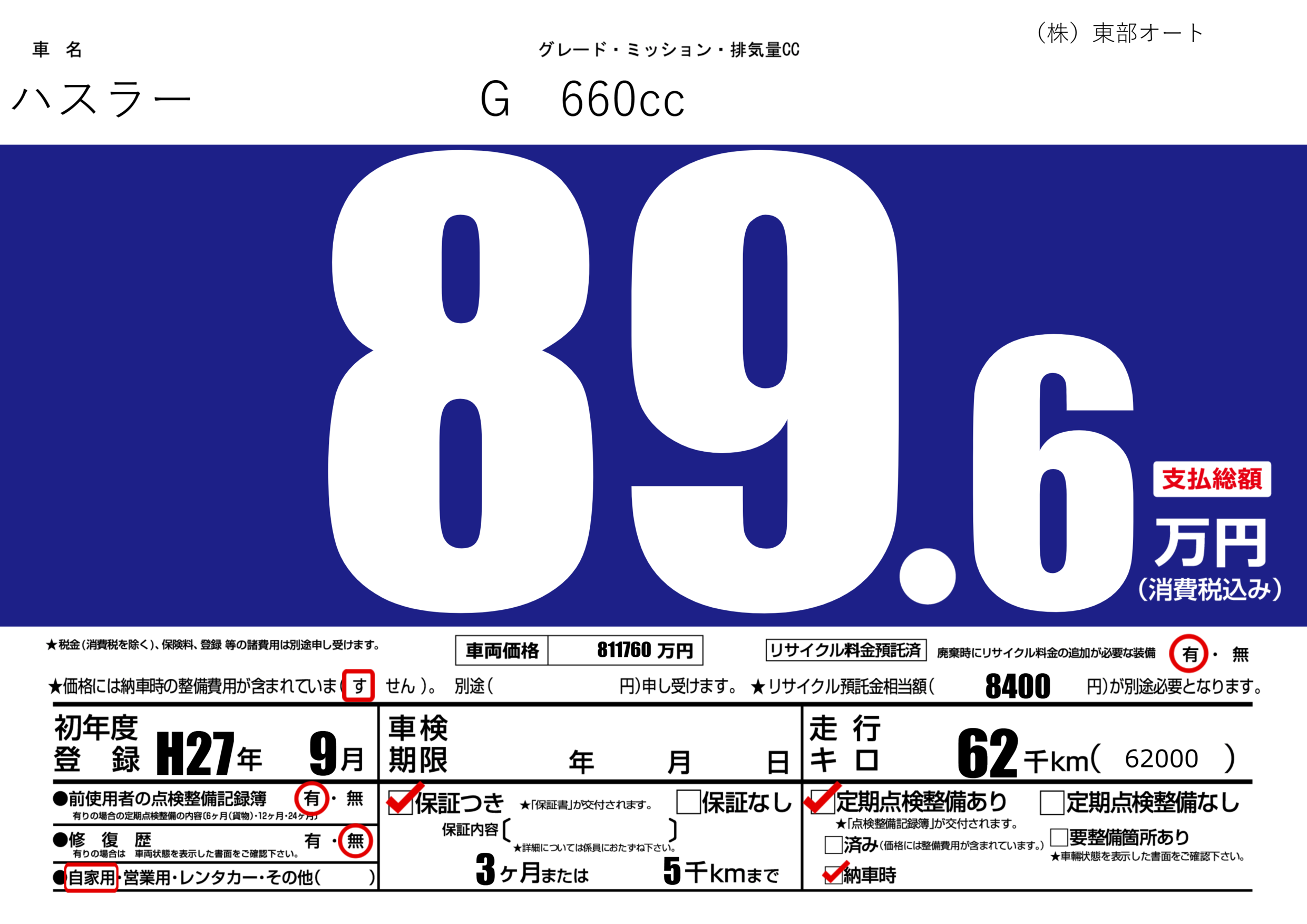 保証付き 保証内容(---) 3ヶ月または(5)千kmまで |