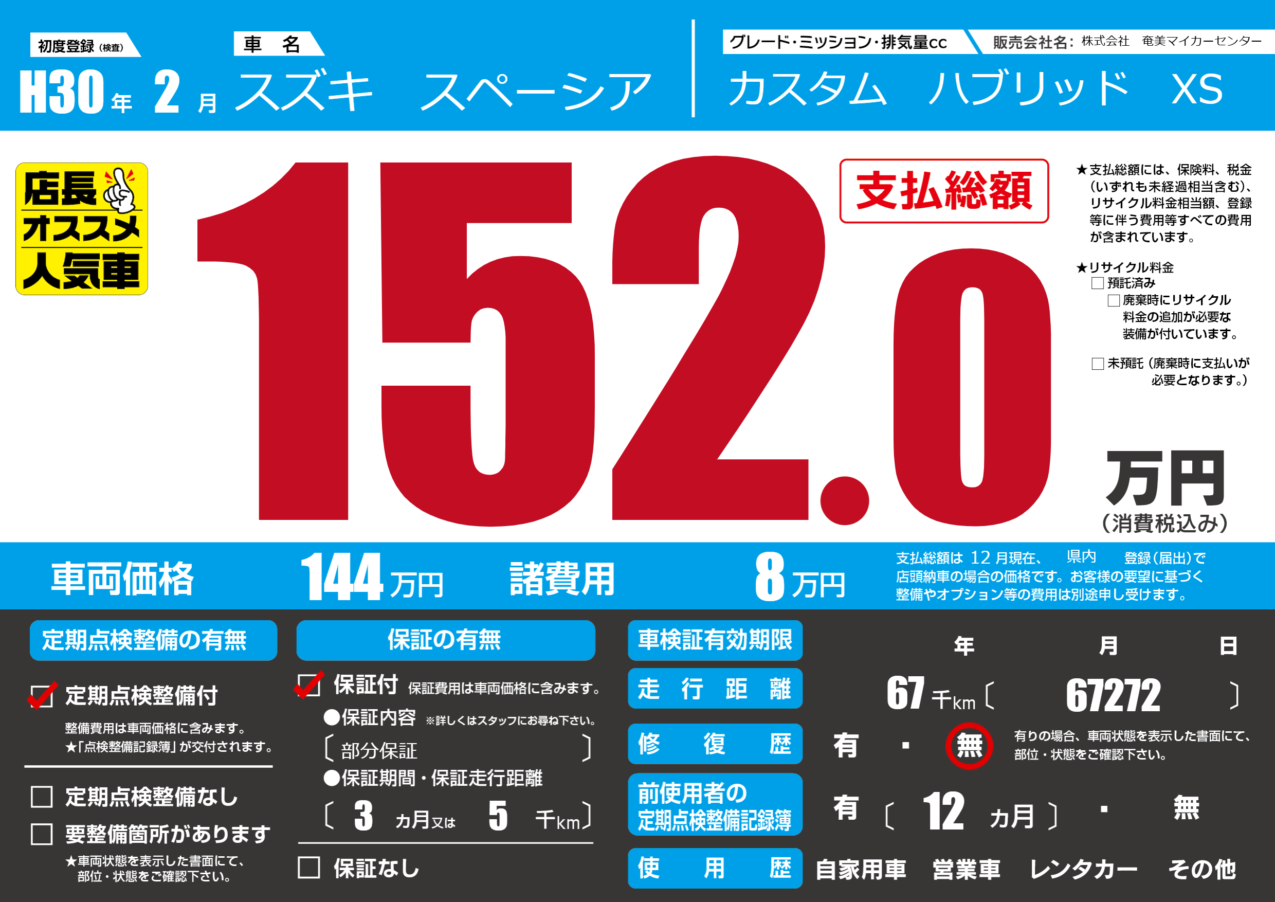 | 初年度登録 | H30年2月 | ||